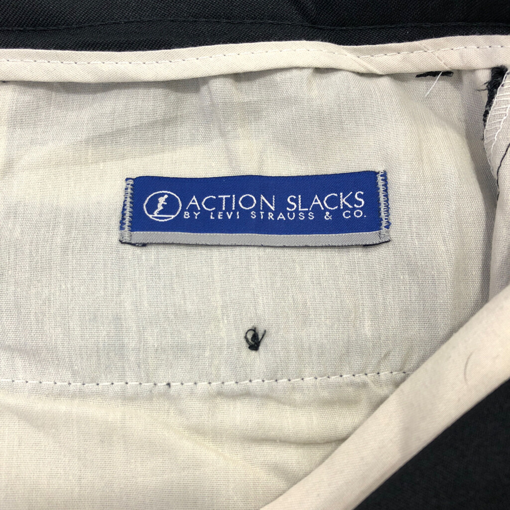 [商品管理番号] U9778 [ブランド] Levi's/リーバイス [サイズ] W34 L32 [実寸サイズ] ウエスト:約86cm 股上:約32cm 股下:約78cm わたり幅:約32cm 裾幅:約22cm [主な素材] 表地 : ポリエステル [色] ブラック [仕様] 生産国 : USA製 00年代 ACTION SLACKS [状態] 汚れ:スネ キズ:ふくらはぎ | |||