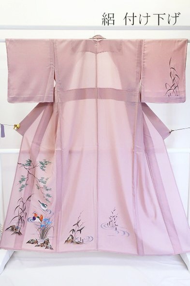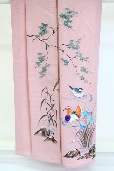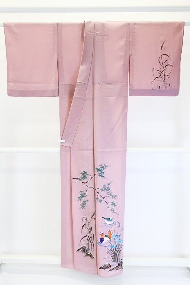夏着物 夏 絽 付下げ 付け下げ くすんだ紫みのピンク 鴛鴦 楓 洗える着物 化繊 身丈156cm 裄丈64cm お洒落 仕立て上がり 着物フィ m-8109 |