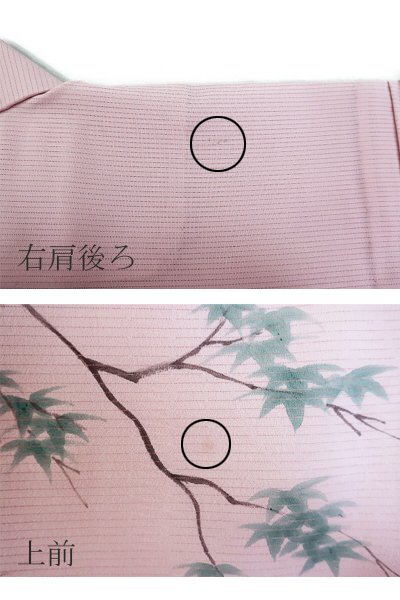 【表地】Bランク 上前裾から46cmの所に6mmの薄いシミ、右肩後ろに2mm程の薄いシミが数点あります。(最終画像参照) |