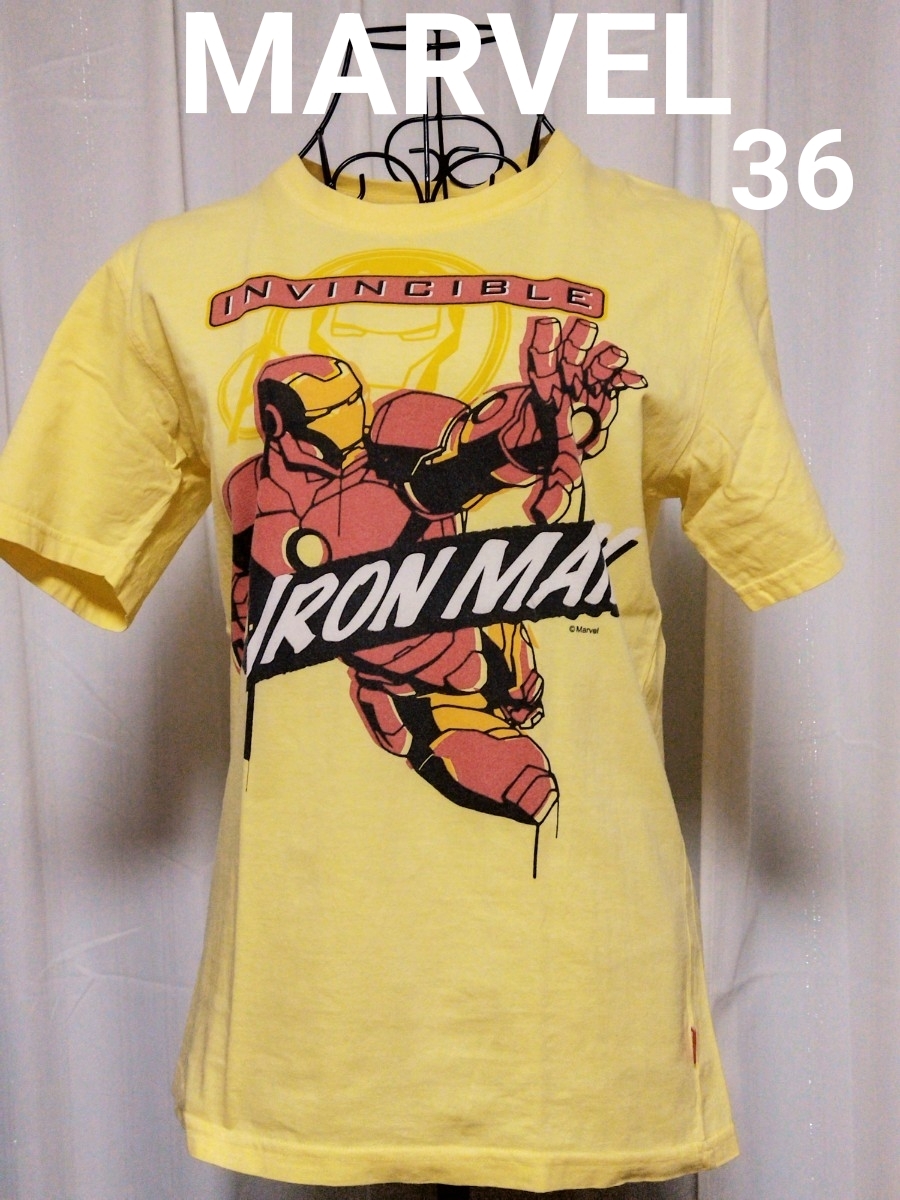 アイアンマンのグラフィックが施されたイエローのTシャツ。