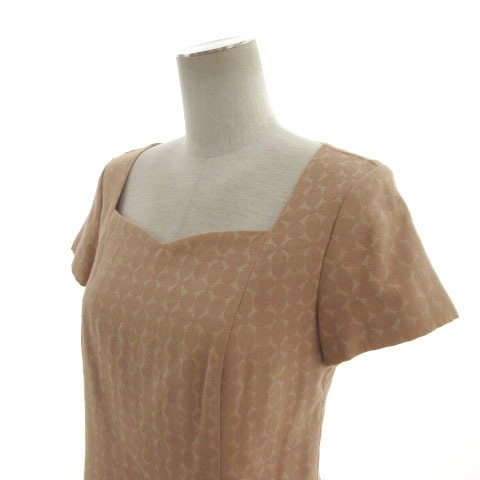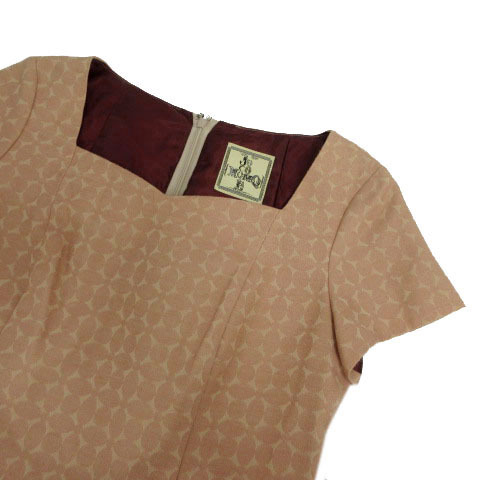 ホコモモラ JOCOMOMOLA ハートシェイプドネック ワンピース GJEGP-02240 半袖 ミディ丈 コットン混 総柄 ピンクベージュ ベージュ 40