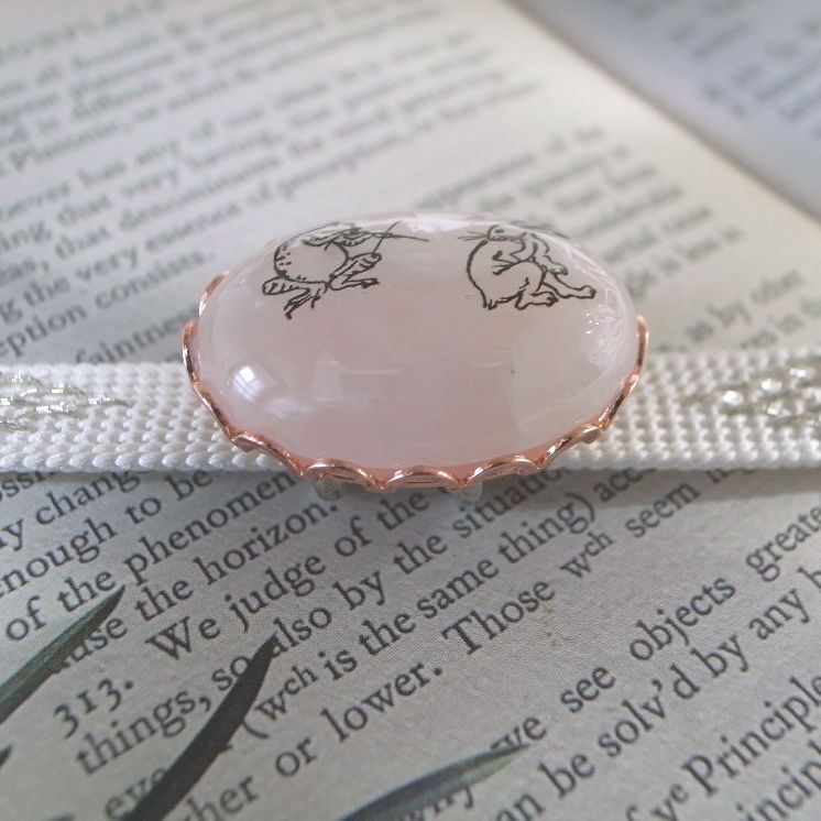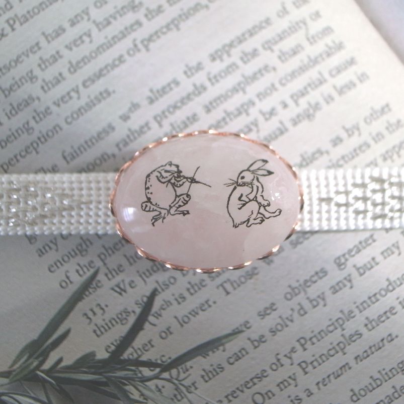 LEAF CLUB ♪ハンドメイド 帯留め 帯留 ローズクォーツ 鳥獣戯画 天然石 兔 蛙 うさぎ かえる 薄ピンク フレーム クォーツ
