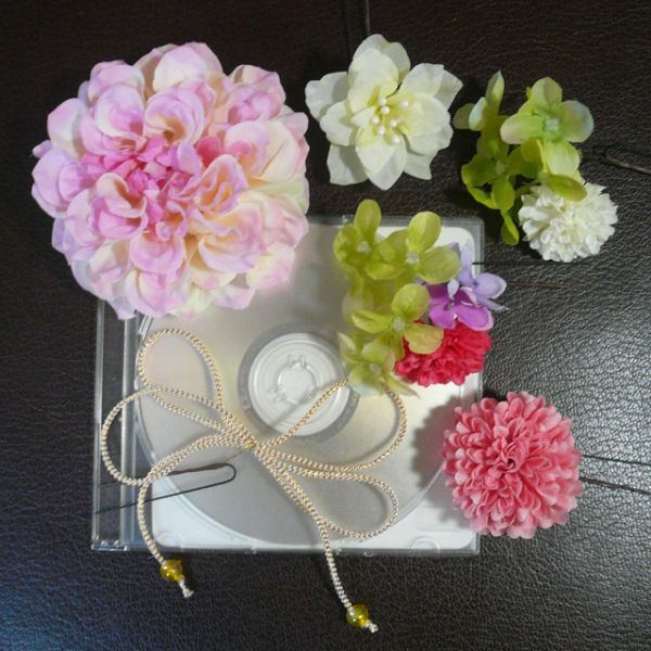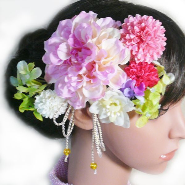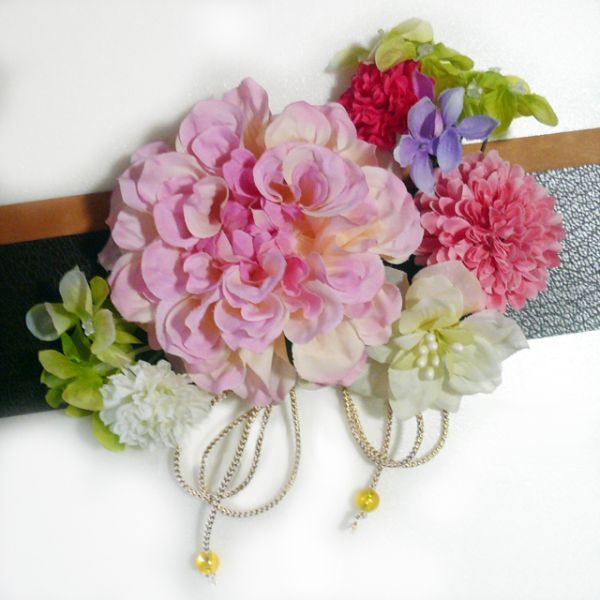 アートフラワーの髪飾りです ピンク系 ダリアはコサージュピン付きです