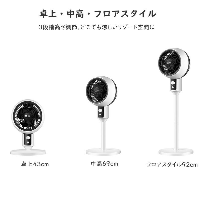 サーキュレーター 扇風機 DCモーター 強力 静音 省エネ 3段階風量 3段階高さ 空気循環 部屋干し タイマー機能 上下左右首振り リモコン付き
