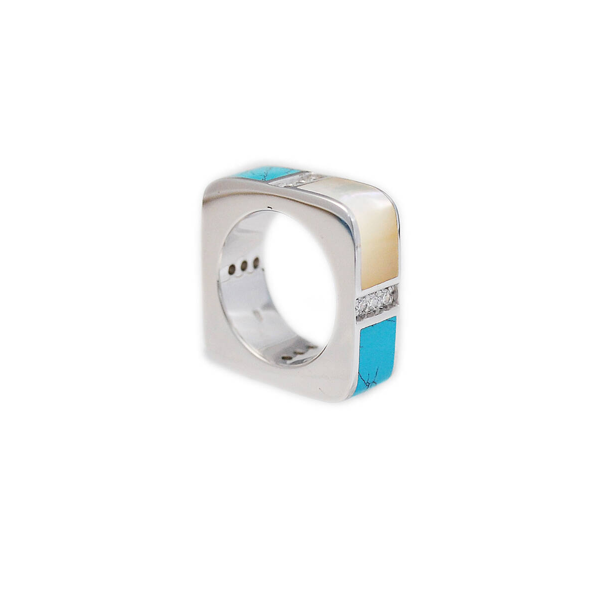 16号 マザー・オブ・パール人工ターコイズジルコニア925シルバーリング 925刻印あり GR-17795