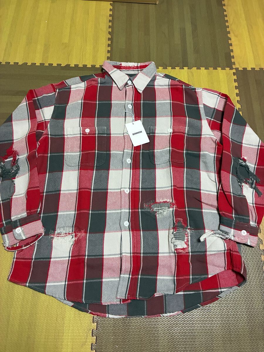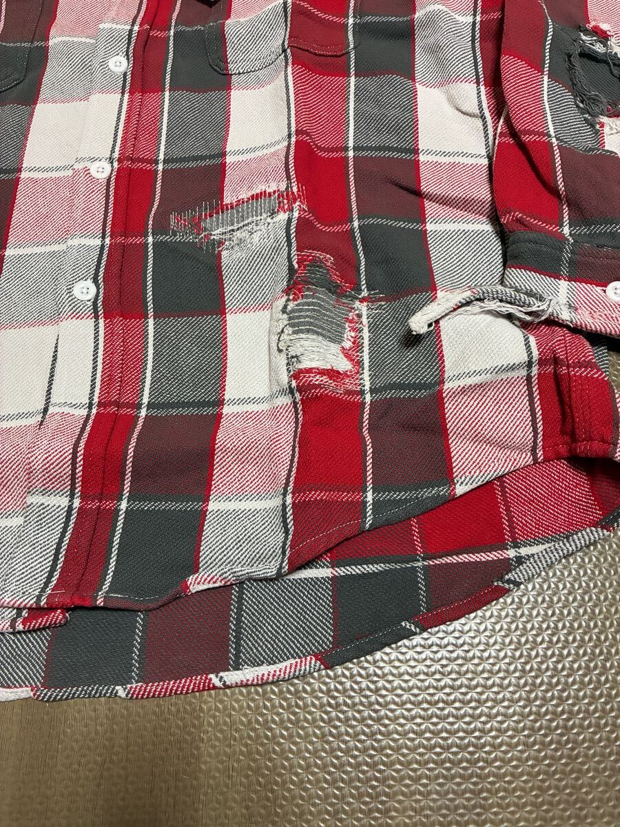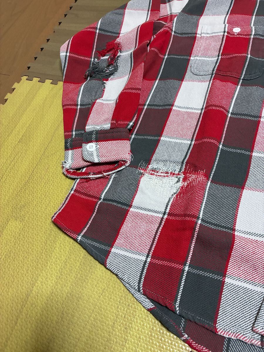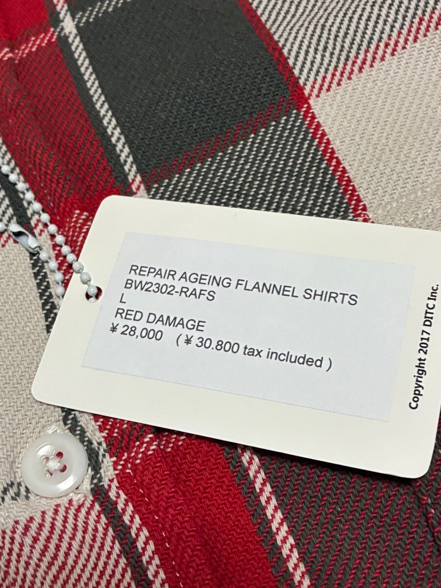 バウワウのネルシャツ、REPAIR AGEING FLANNEL SHIRTS、色はレッドとブラックとホワイトのチェック柄、サイズL、新品での出品になります。