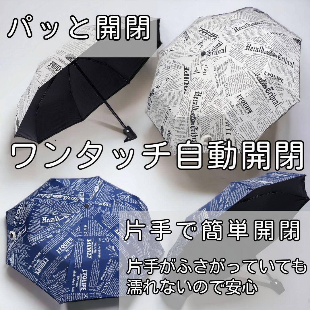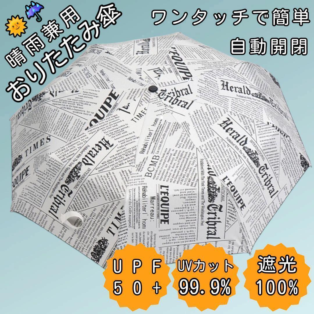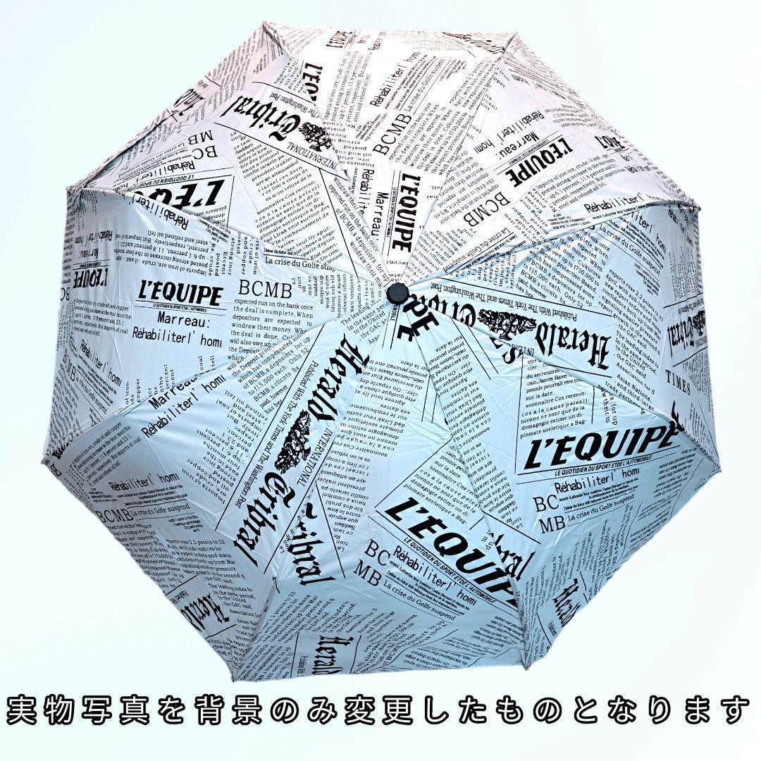 ・レディース&メンズ兼用の英字新聞柄の折り畳み傘・日傘・雨傘。