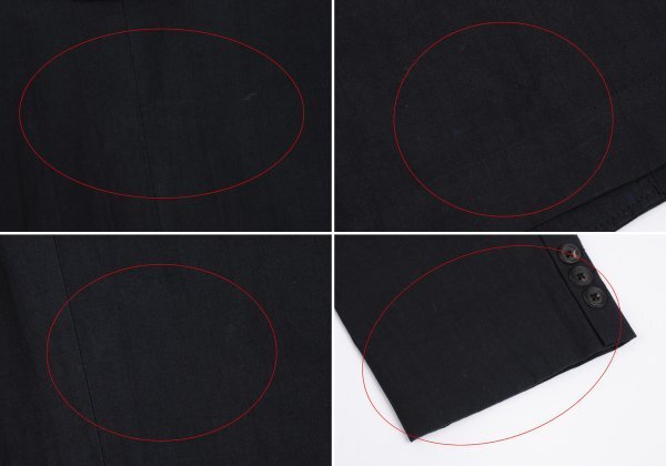 | コンディション | 肩パッドがあります。前身頃・袖・後ろ裾に変色・汚れ、襟裏に色褪せ、前立てにステッチの切れ、袖口にスレがあります(写真参照)。目立つダメージのみの掲載になります。軽微な汚れ、ダメージの掲載漏れはご容赦ください。返品、返金等は不可となりますので予めご了承下さい。 |