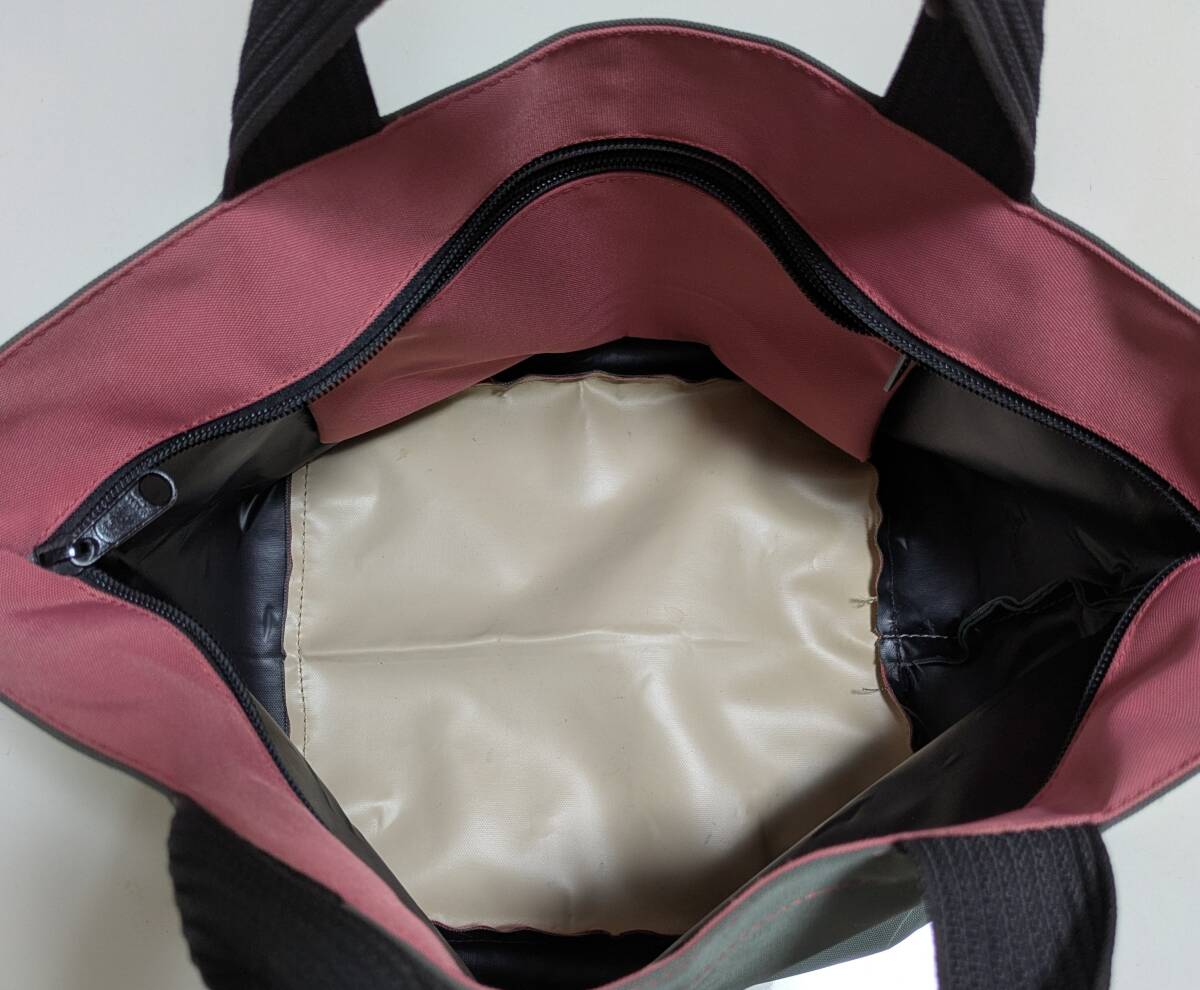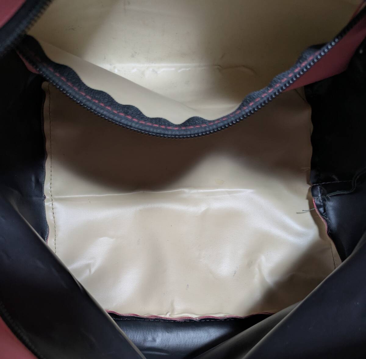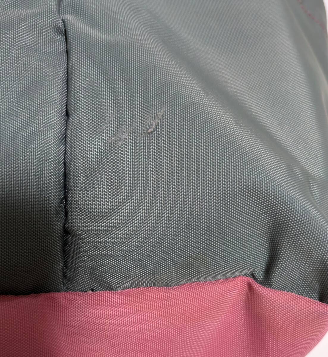 おおよその大きさは、幅40cm×奥行20cm×高22cm(取っ手部分を長さ除く)です。何かに引っかかった際に生じた破損(画像3、4枚目)があります。シミ、汚れ、気泡、キズ等があります。ノークレーム、ノーリターンでお願いします。ゆうパケットで送付しますので、箱詰めの際、バッグを多少折り曲げます。