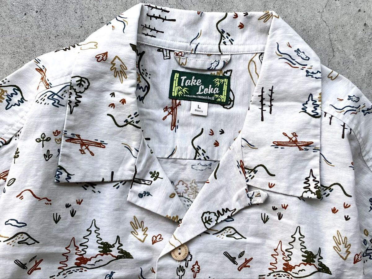 新品同様 mont-bell [Take Loha] L モンベル 2104776 メンズ 半袖 アロハシャツ タケロハ 竹ロハ 花柄 総柄 開襟 オープンカラー