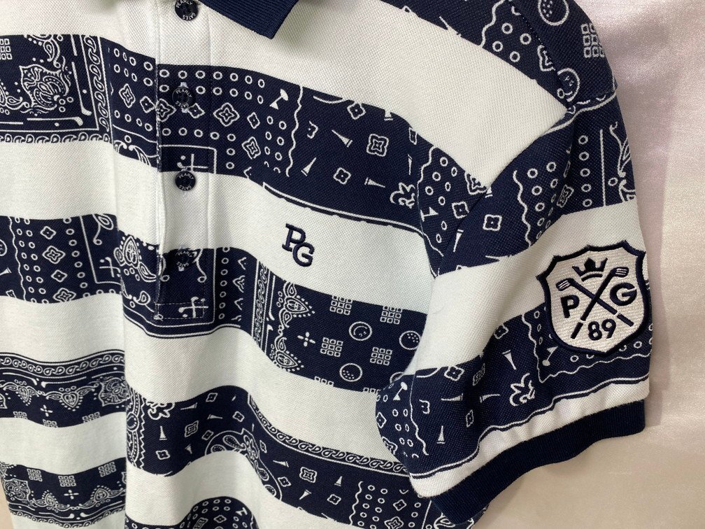 PEARLY GATES パーリーゲイツ ペイズリー柄 ボーダー 鹿の子 ポロシャツ 053-0160303 中古品。通常の着用に伴う状態。 |