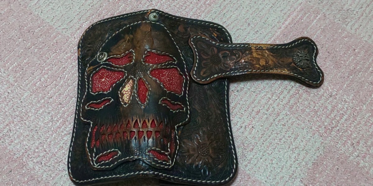 「◆訳あり◆DEEP ZONE バイカーズウォレット 本革 スカル」になります。