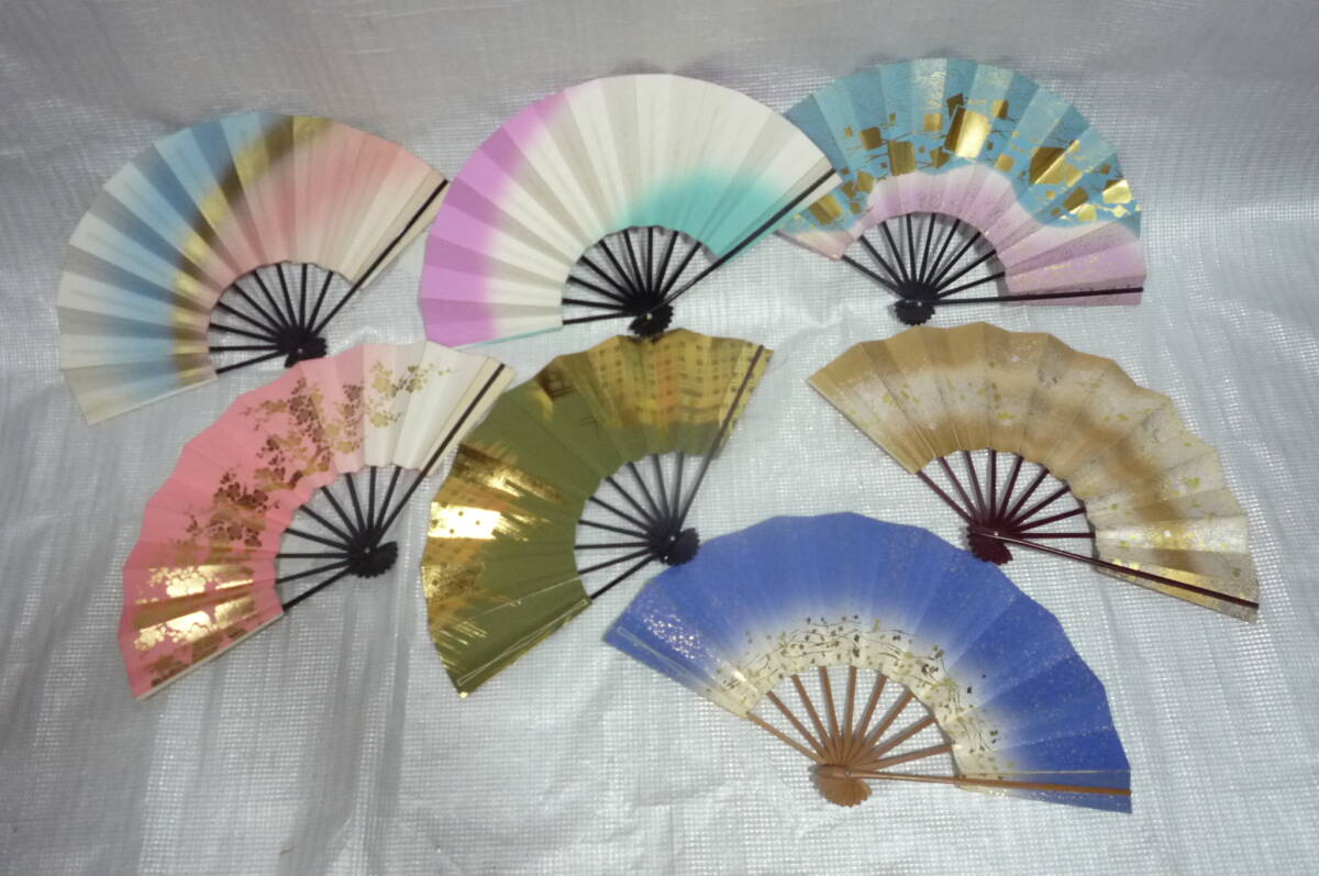 舞扇/7点/日本舞踊/ 民謡/ 舞踊/ 和装小物 /中古/箱付き/ネーム消し有