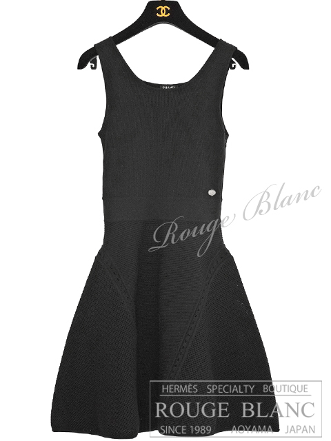 シャネル ノースリーブ ニットワンピース ブラック 黒 #34 15P CHANEL ドレス