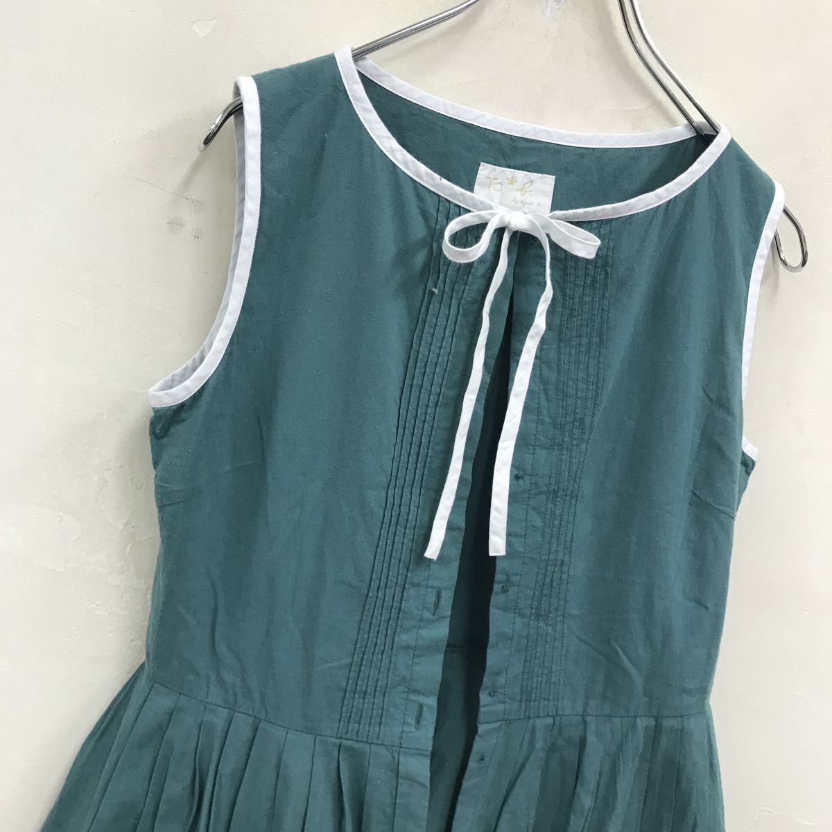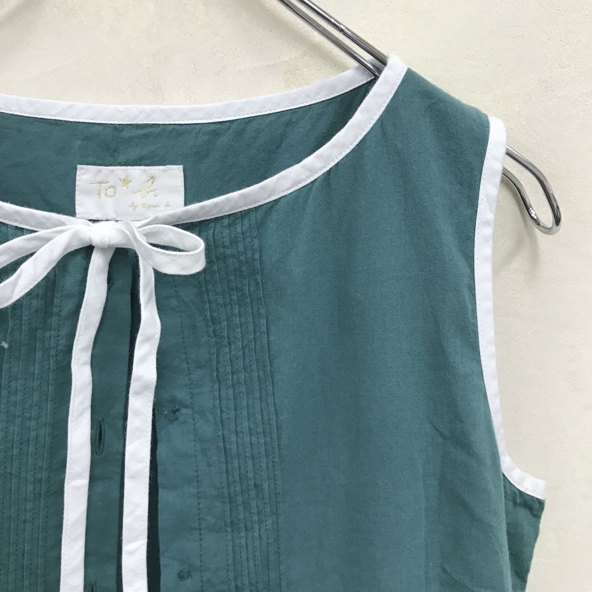 2H1034-R◆To b. by agnes b. トゥービーバイアニエスベー ノースリーブシャツワンピース◆サイズ38 レディース 婦人 綿100% グリーン