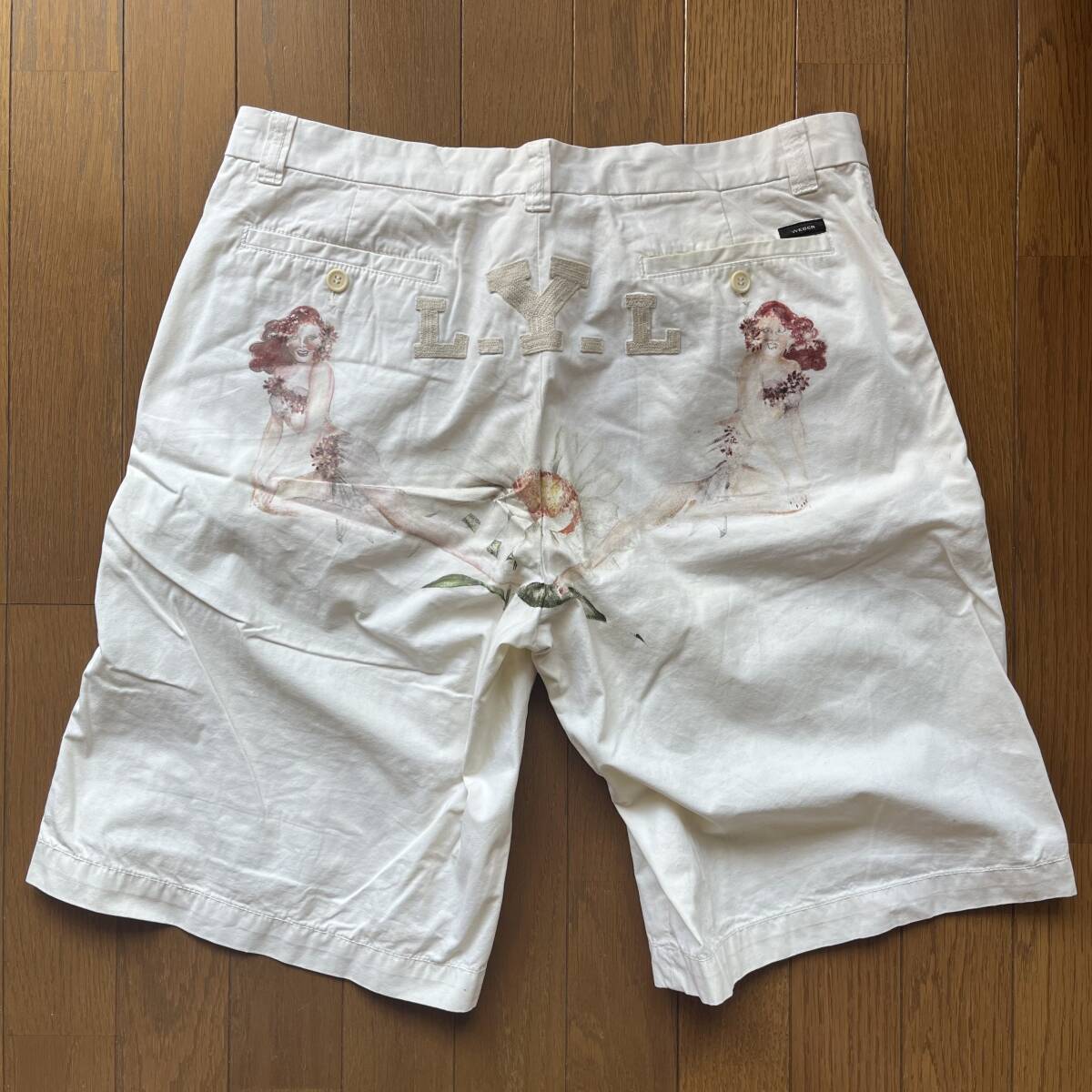 イタリアサイズ50、日本サイズL。股下約28.5cm、股上約26cm、裾幅約32cm。