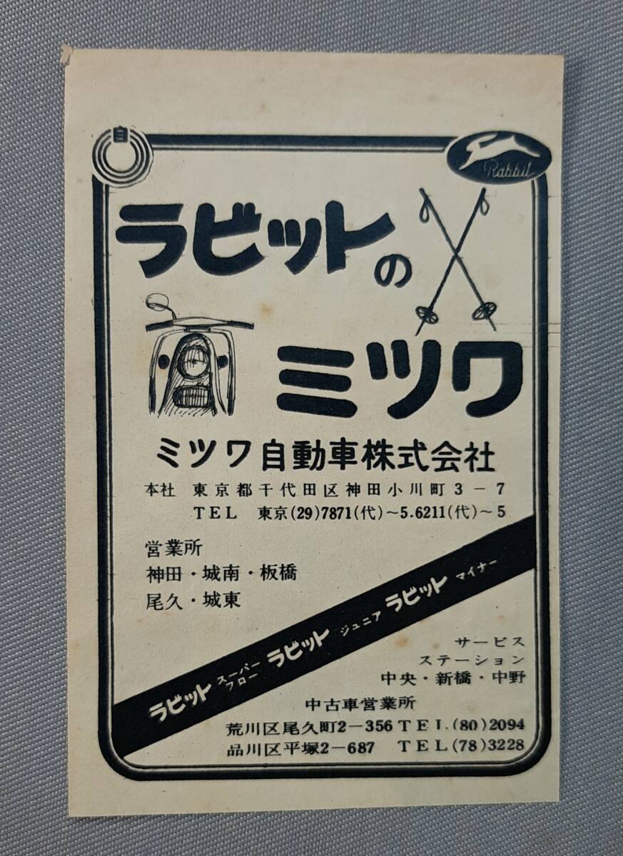 60年代の雑誌の切抜 ラビット S101 広告 旧車 ラビットS601 シルバーピジョン ミゼット 山口 コレダ メグロ