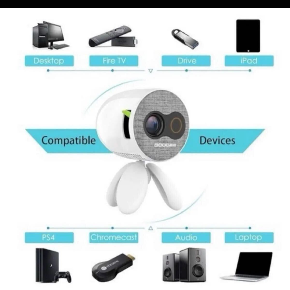 【ユニークなデザインプロジェクター】GooDeeミニプロジェクターは、モダンでスタイリッシュな外観で、ご自宅や劇場の装飾にマッチします。 360度回転する三脚で、このキュートで持ち運びやすいビデオプロジェクターは、友人や家族との幸せな機会に最高の仲間です。