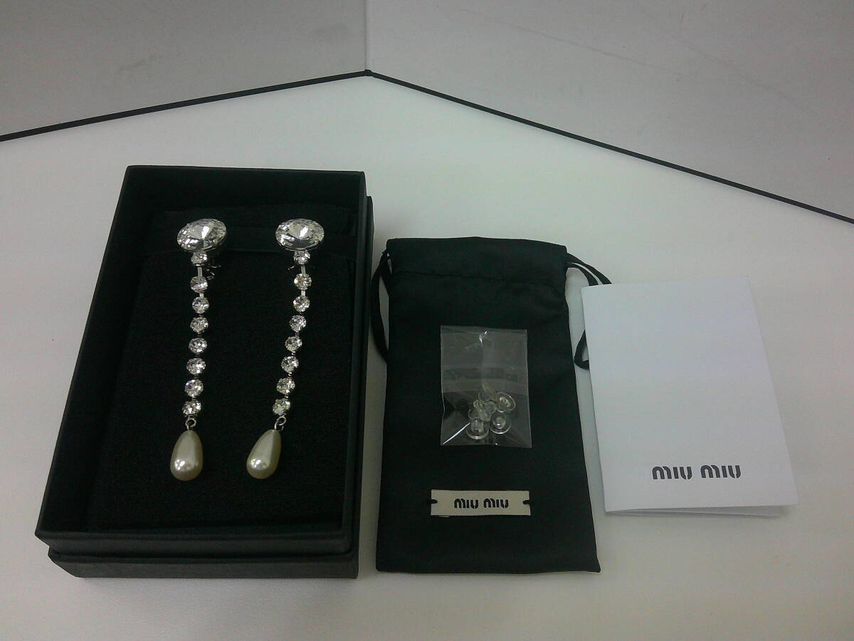 | #556 miumiu ミュウミュウ ロングフリル コスチュームパール イヤリング 美品 アクセサリー クリスタル 箱付き | ||