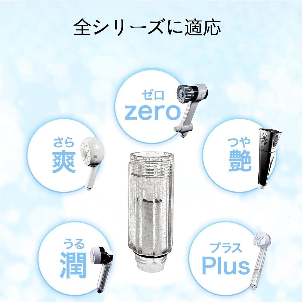 【機能①】:製品内蔵の亜硫酸カルシウムが、水道水中の残留塩素を約80%除去します。肌への刺激を軽減し、敏感肌の方でも安心して使用できる快適なシャワー体験を