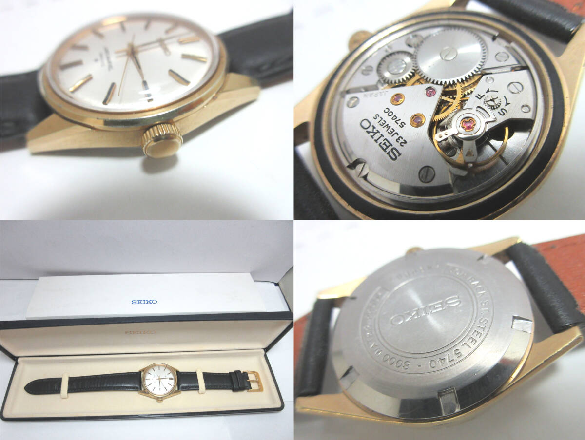 新規の方は、ご購入の意思がある事をお手数ですが質問欄よりご連絡下さい。ない場合は、申し訳ありませんが削除させて頂きます。1967年製造、径:35mm(リューズ除く)金色(裏蓋ステンレス)ラグ幅:19mm。文字盤:オリジナルできれいな方だと思います。風防:プラスティック製、肉眼でわかる傷なし。ケース:小傷はありますがきれいな方だと思います。ベゼル:いたみあり。機械:cal.5740C手巻き、動作しますが未整備です。ベルト尾錠は社外。画像の箱付き。古い物ですので現状でお願い致します。こちらも見落としがある事もありますので、あくまでもジャンク扱いでお願い致します。 また、ご入札頂いてる方でマイナス評価が多い等当方の判断で不適切と思われる場合、入札を取り消させて頂きますのでご了承下さい。