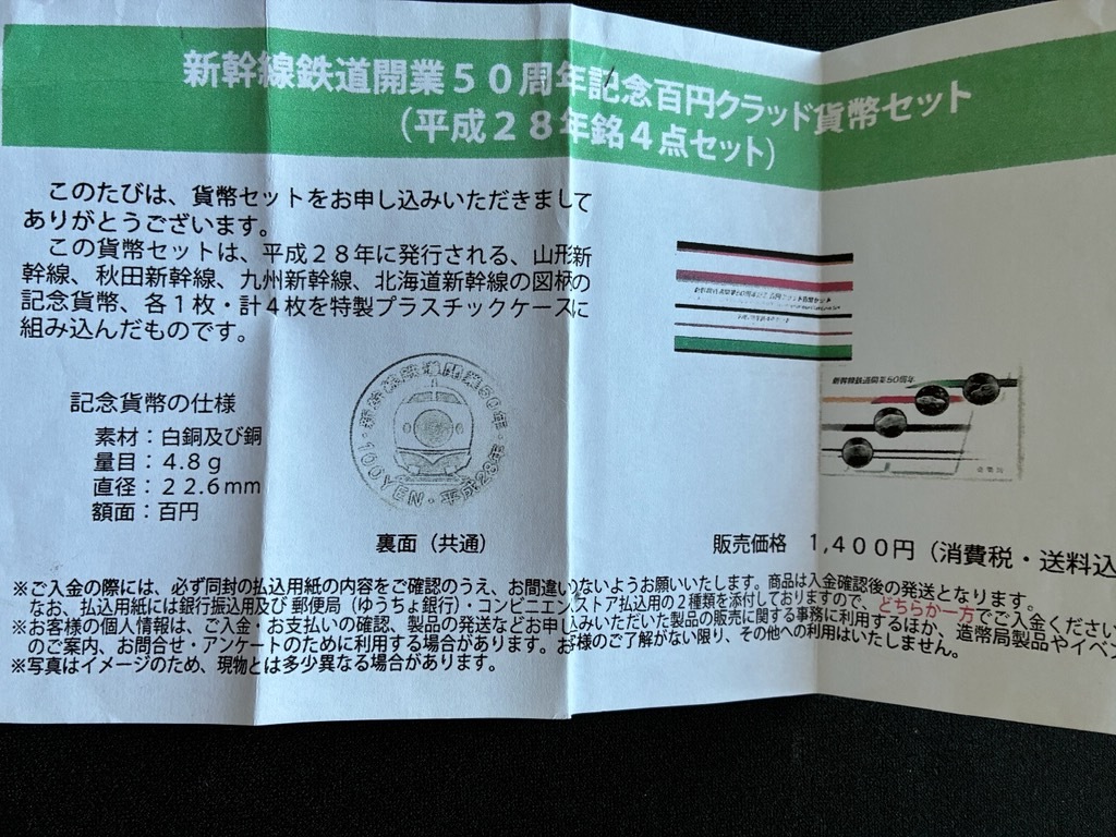 新幹線鉄道開業50周年100円クラッド貨幣セット
