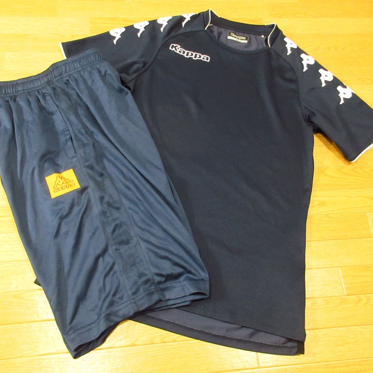 ◎極美品!KAPPA カッパ M 上下セット 半袖 Tシャツ&ハーフパンツ ショートパンツ ドライ 速乾 メンズ 紺◆BA3214