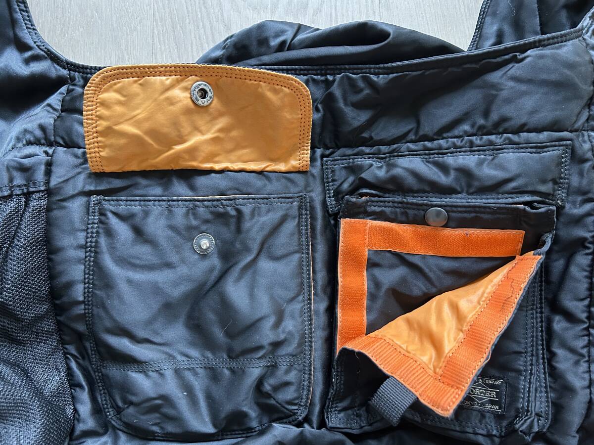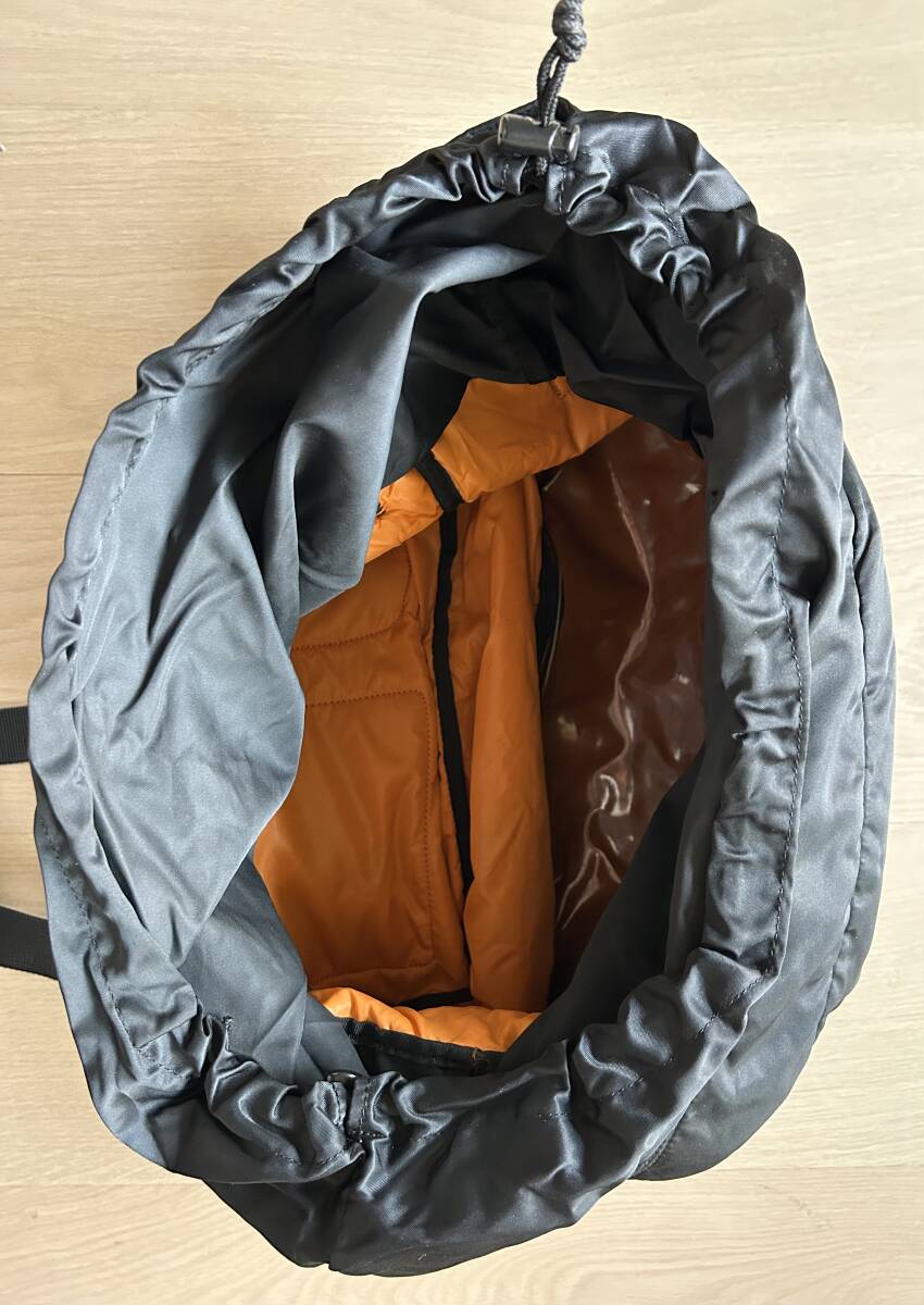 バッグ内側のオレンジ色のナイロン布地にも目立つような破れやほつれ、汚れなどはありません。
