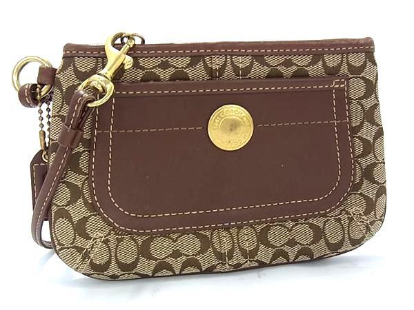 ■美品■ COACH コーチ ミニシグネチャー キャンバス×レザー 小物入れ マルチケース ポーチ レディース ブラウン系 DH4693