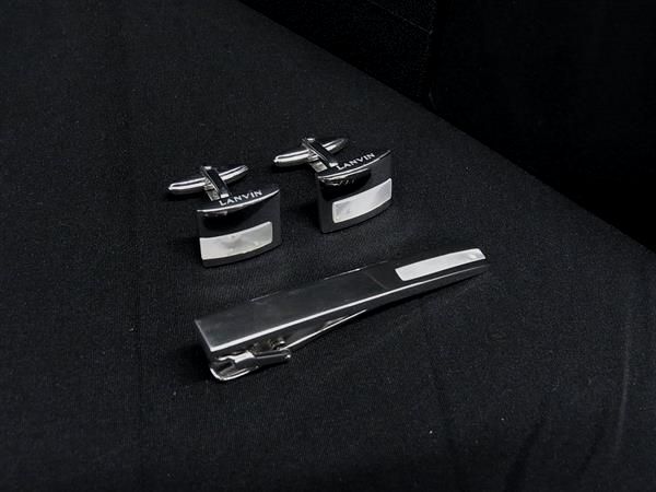 ■極美品■ LANVIN ランバン シェル ネクタイピン カフスボタン カフリンクス 2点セット アクセサリー 紳士 メンズ シルバー系 DH5775