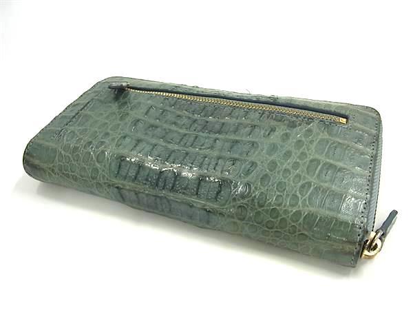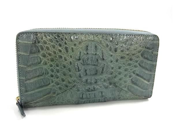 ■極上■本物■ クロコダイル カイマン ラウンドファスナー 長財布 ウォレット 小銭入れ 札入れ レディース ミントグリーン系 DI2373