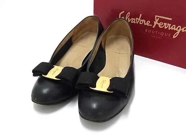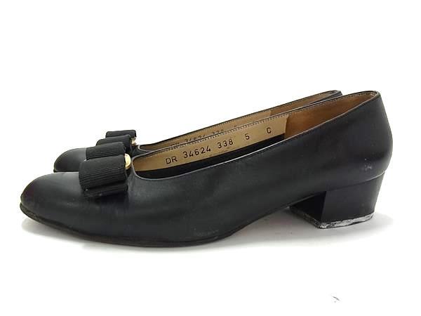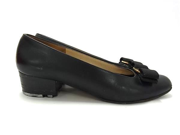 Salvatore Ferragamo フェラガモ ヴァラリボン レザー ヒール パンプス サイズ 5(約22.0cm)靴 シューズ レディース ブラック系 DH8413
