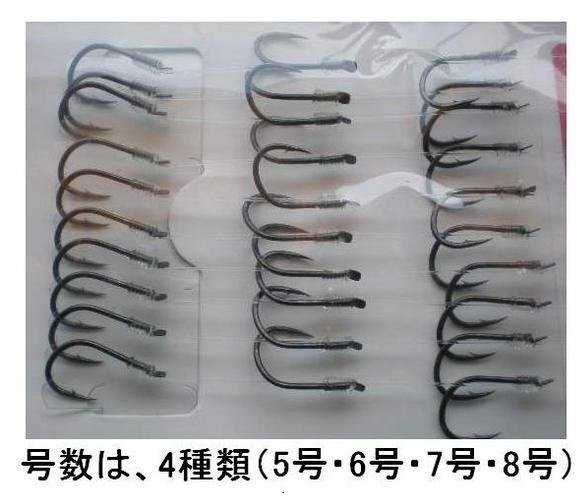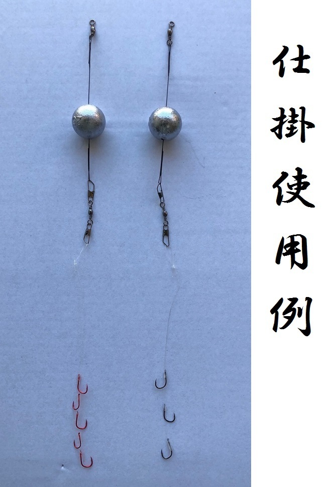 | 商品サイズ | 針 5号 ・ ハリス 4号。 針 6号 ・ ハリス 5号。 針 7号 ・ ハリス 5号。 針 8号 ・ ハリス 6号。 |