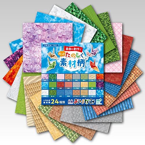 本商品は、本物のような質感を表現したリアルな素材柄のおりがみ バラエティ豊かな24種類各3枚 計72枚入となります。いろんな創作の場でお楽しみいただけます。紙の両面に抗菌剤入りの印刷ニスをコーティングしておりますので折り紙全体が抗菌に優れ、大腸菌や黄色ブドウ球菌などの細菌類の繁殖を抑制することができます。折り紙は日本ならではの遊び、文化であり、 想像力・集中力・思考力・色彩感覚が 磨かれるなど様々なメリットがあります。 貼り絵、切り絵などでもお楽しみいただけます。病院へのお見舞いに、発表会などの催事に、お部屋の装飾用としてもお使いいただけます。