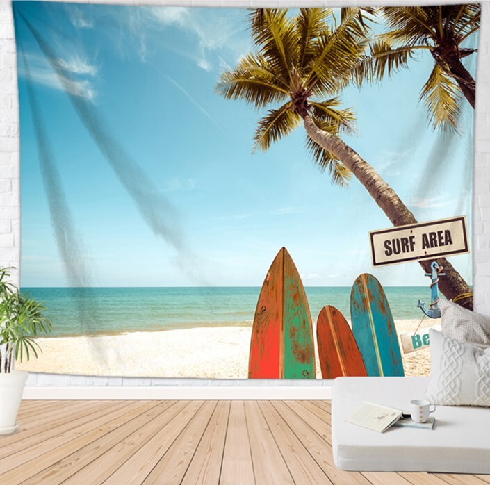 【サーフボード・海辺・海・ビーチ★タペストリー 100×150cm】高品質デジタル印刷 模様替え、お部屋の雰囲気が変わる タペストリー