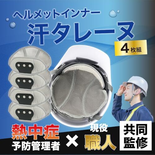 【現役職人監修】(4枚セット)汗タレーヌ ヘルメット インナー ヘルメット用 汗取り 熱中症対策 インナー キャップ 通気 速乾 ライナー メッシュ