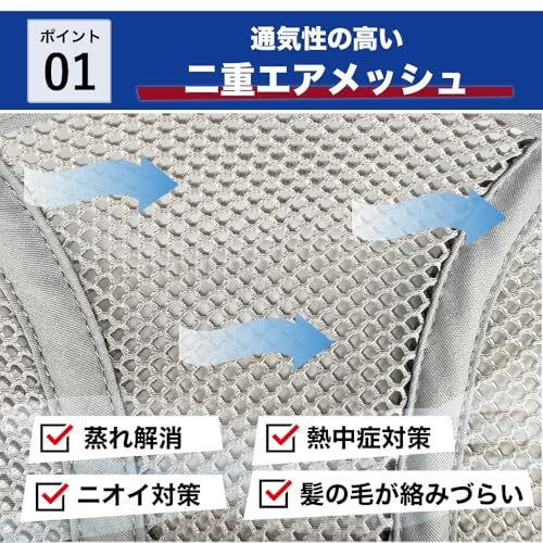 ポイント1、通気性の良い二重エアメッシュ 蒸れ解消 熱中 対策 ニオイ対策 髪の毛が絡みずらい