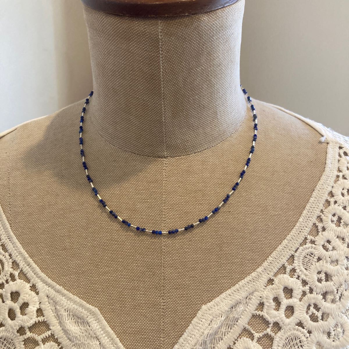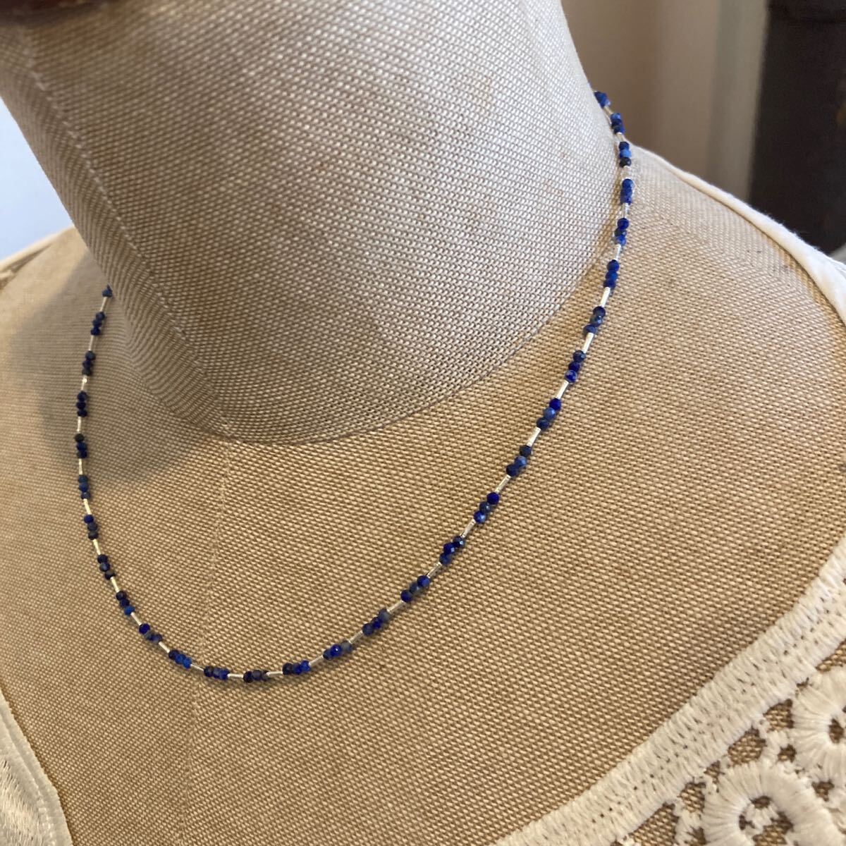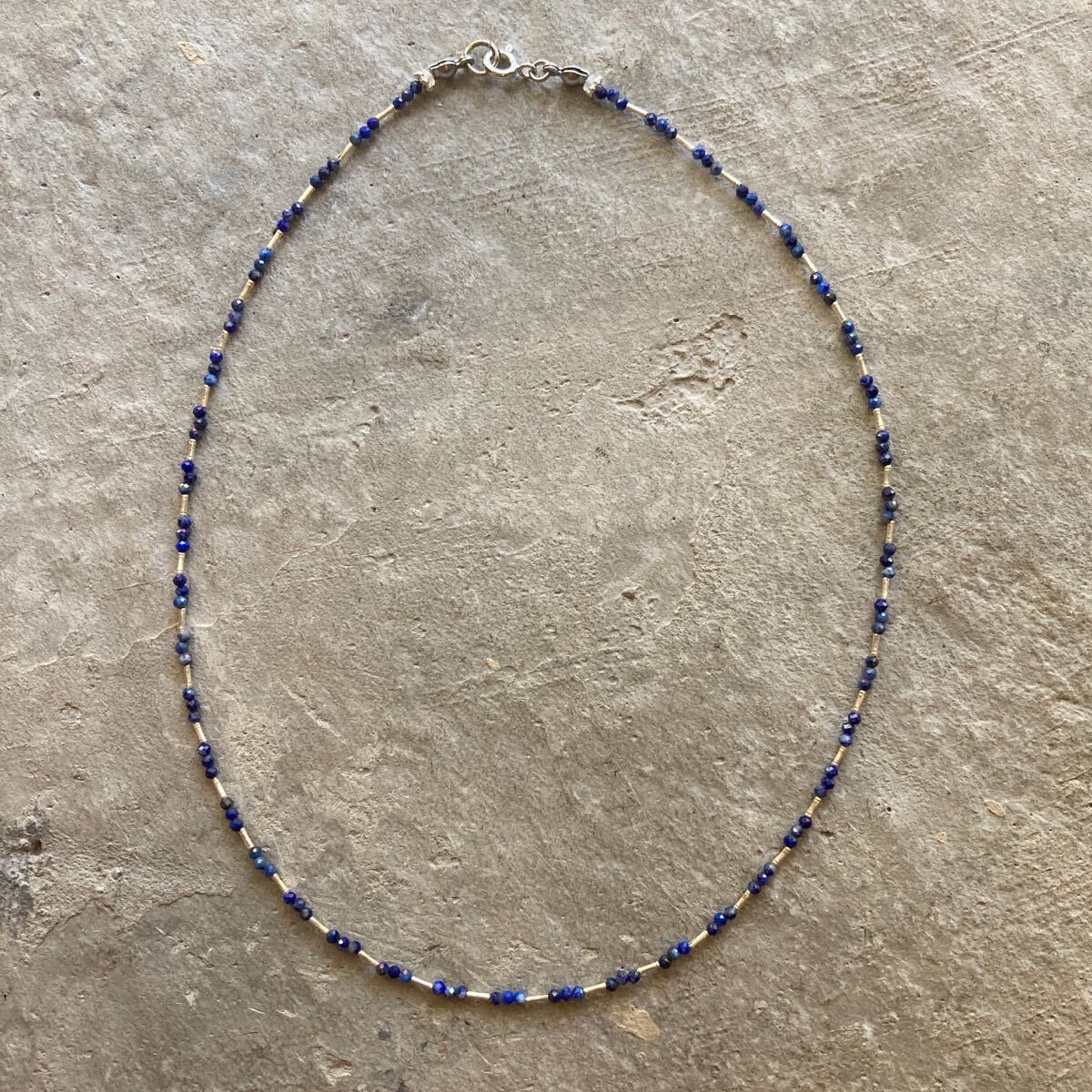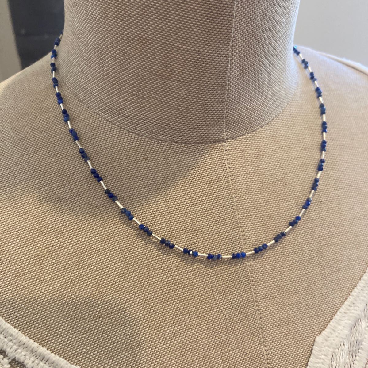 小粒でキラキラと輝くラピスラズリとカレンシルバービーズを合わせたオリジナルネックレスです。