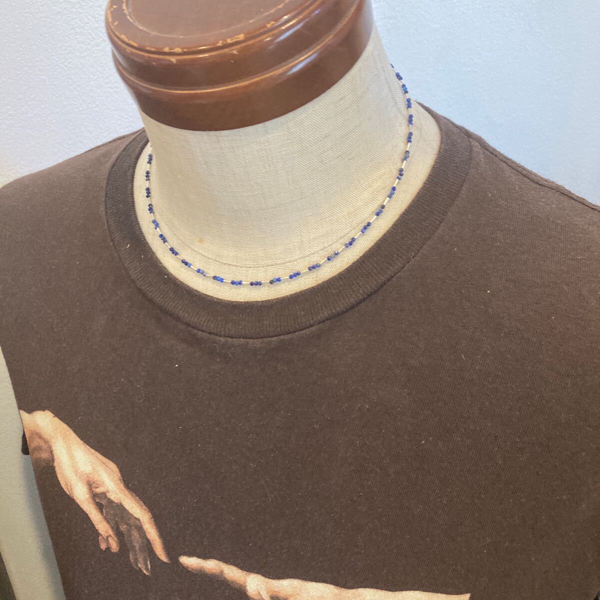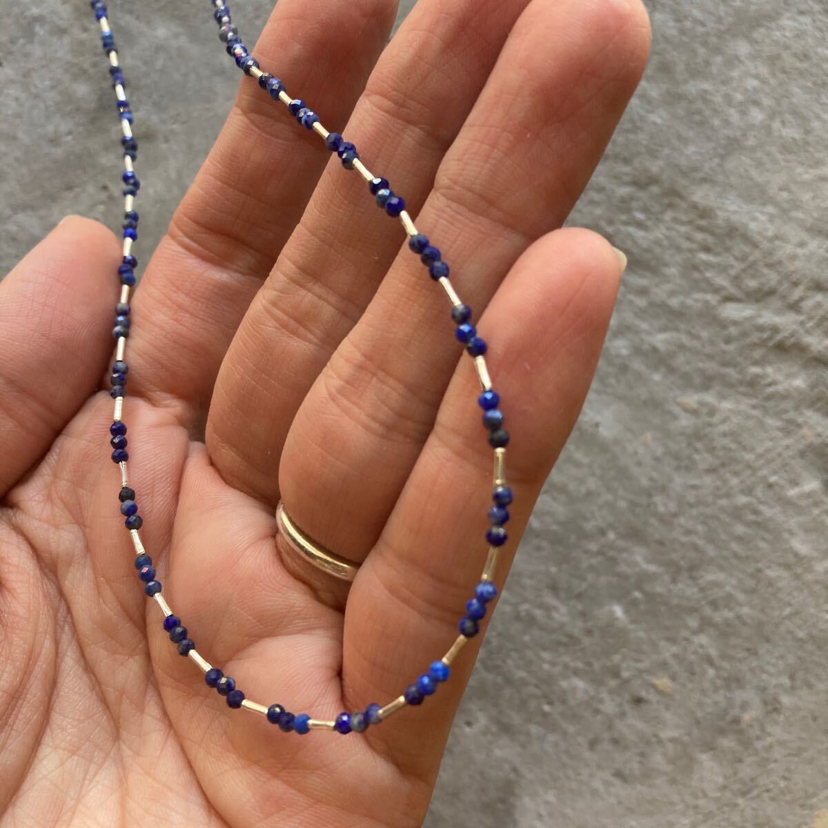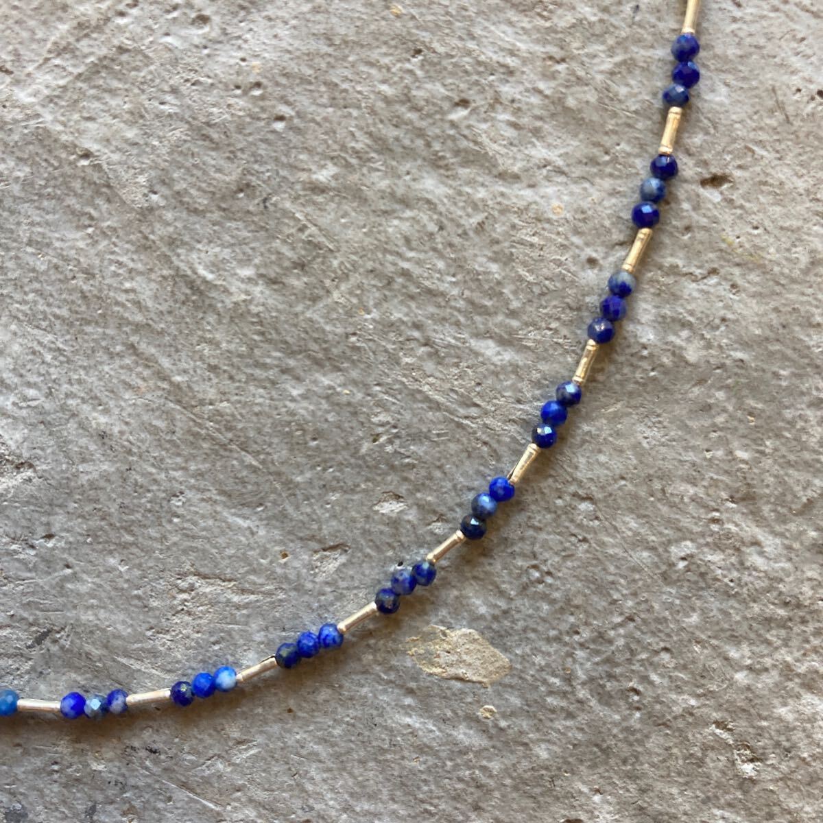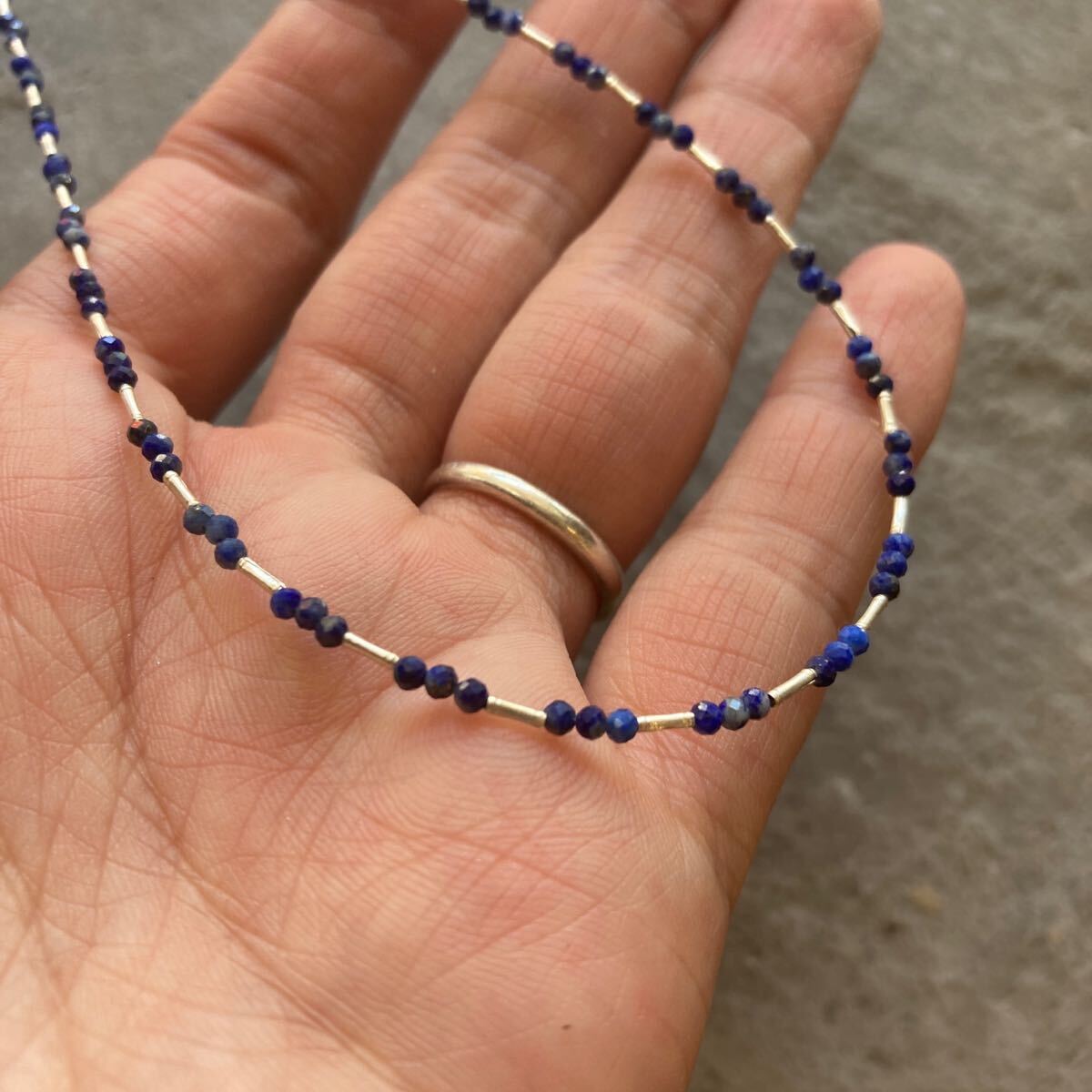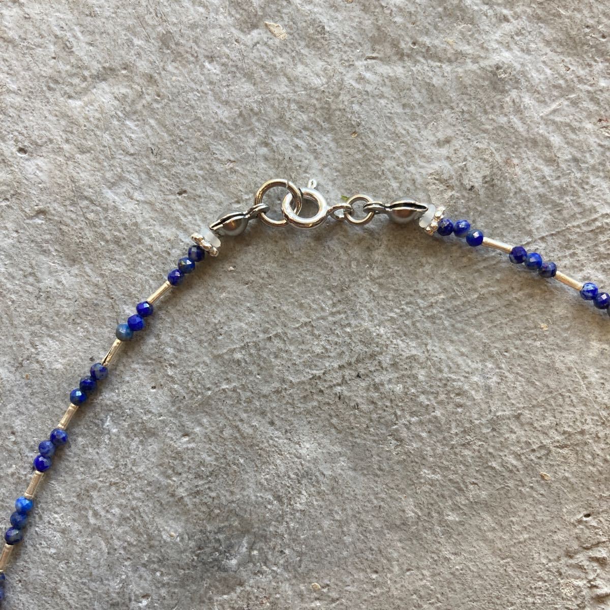小粒でキラキラと輝くラピスラズリとカレンシルバービーズを合わせたオリジナルネックレスです。