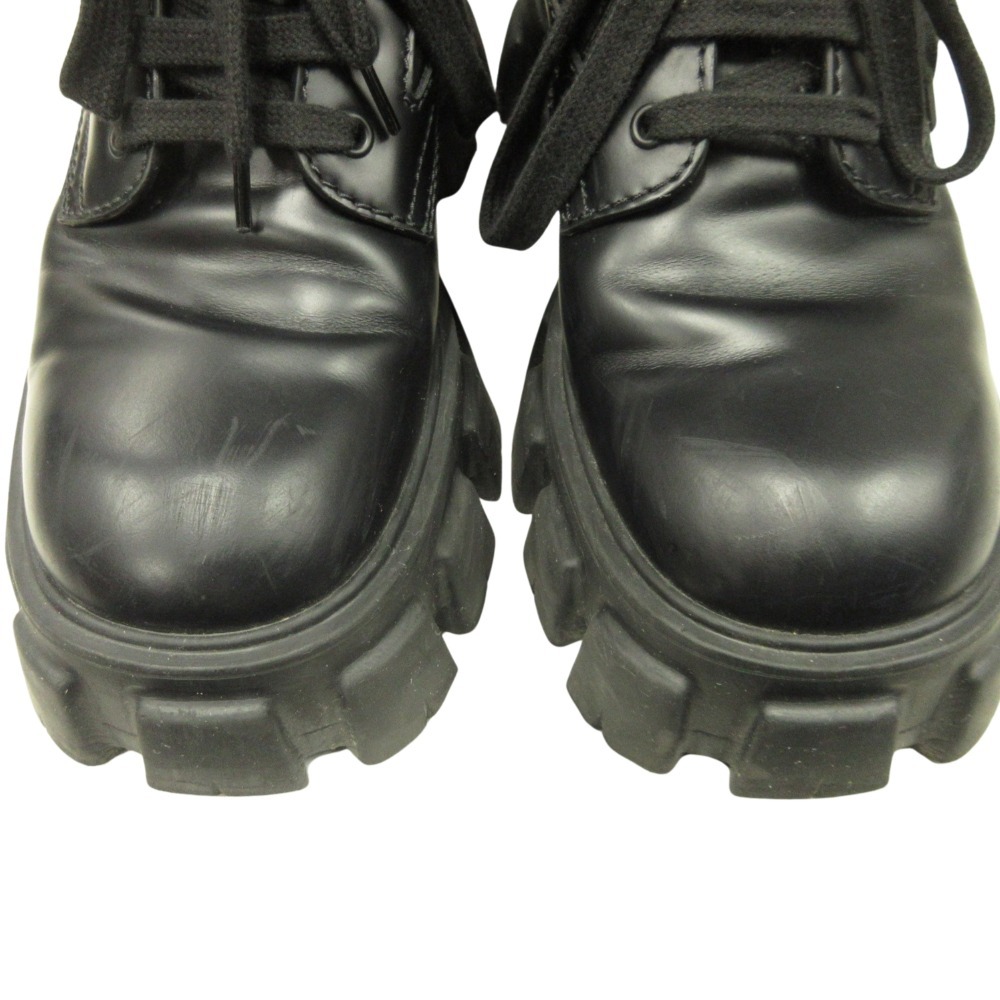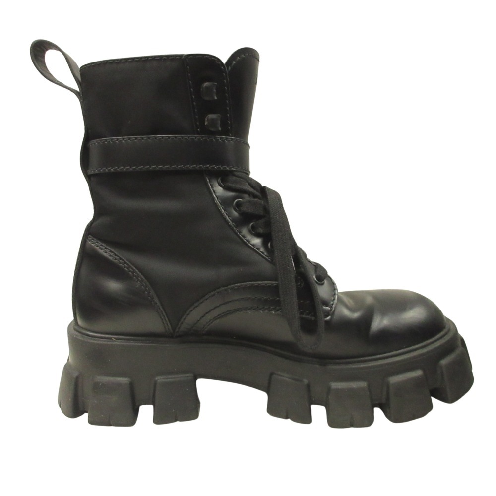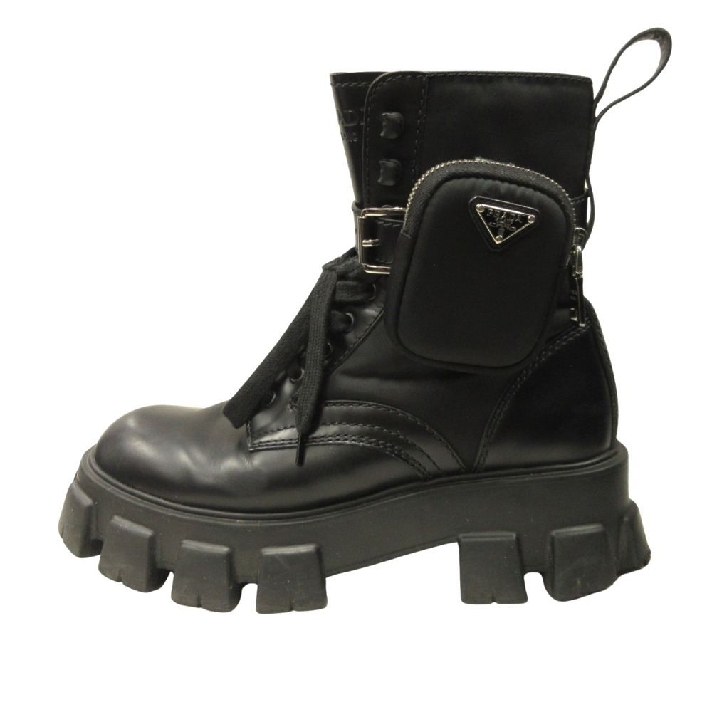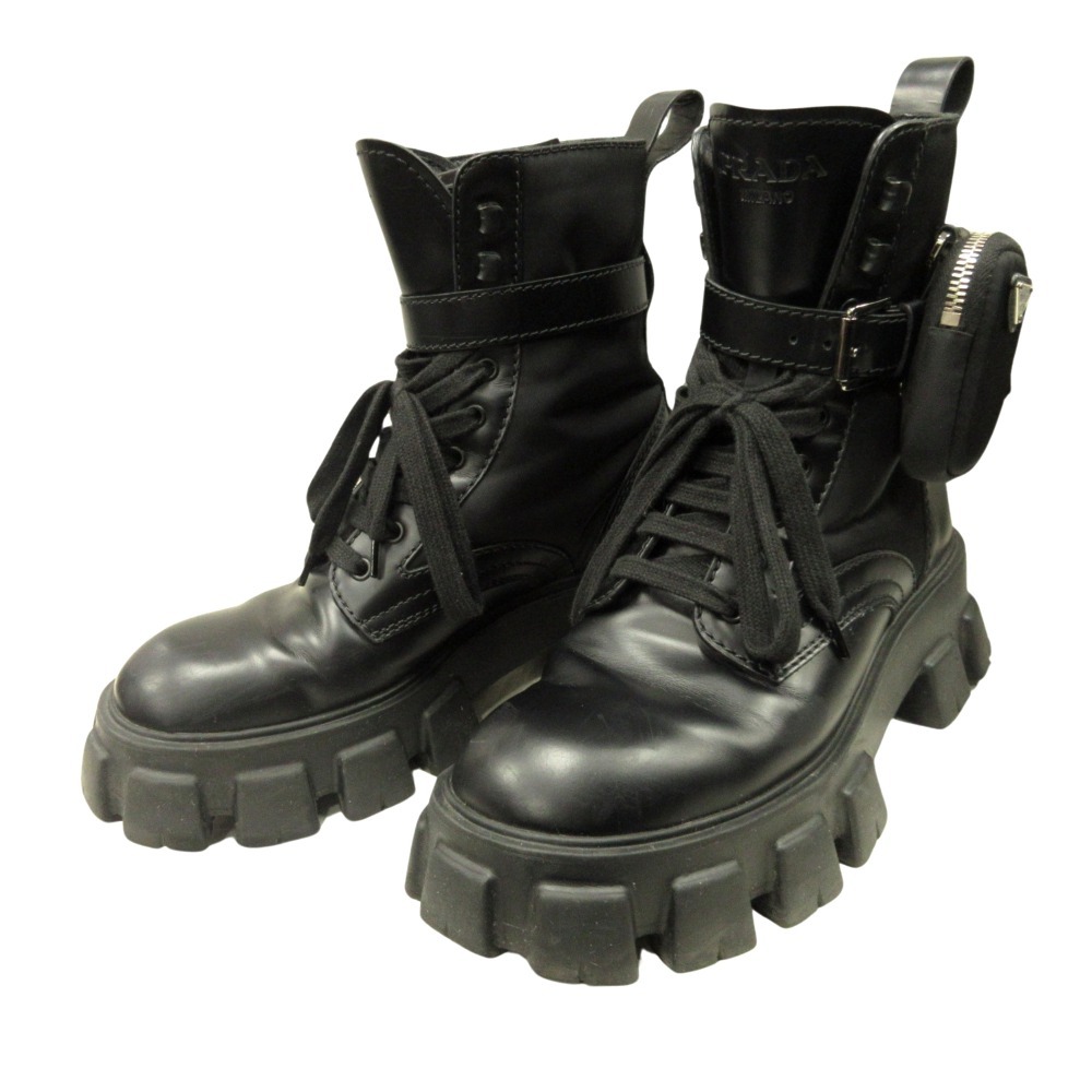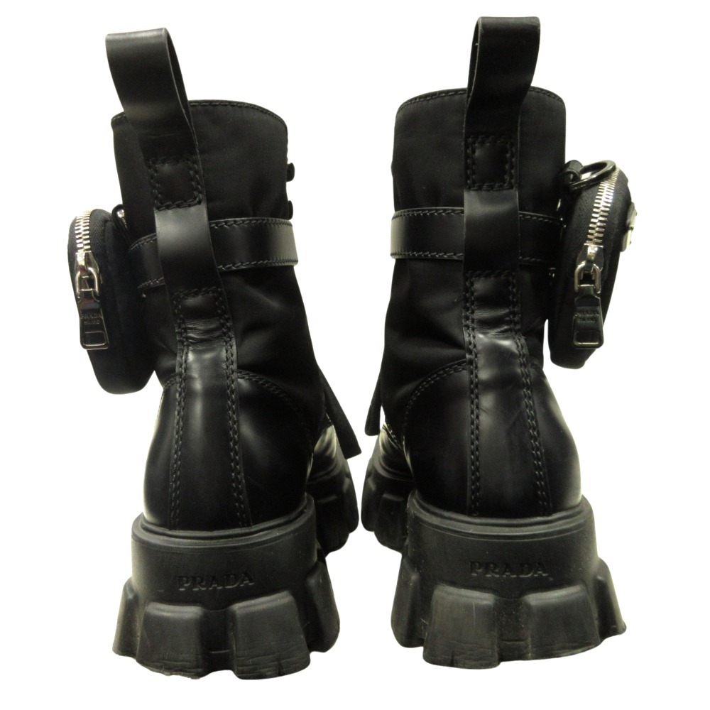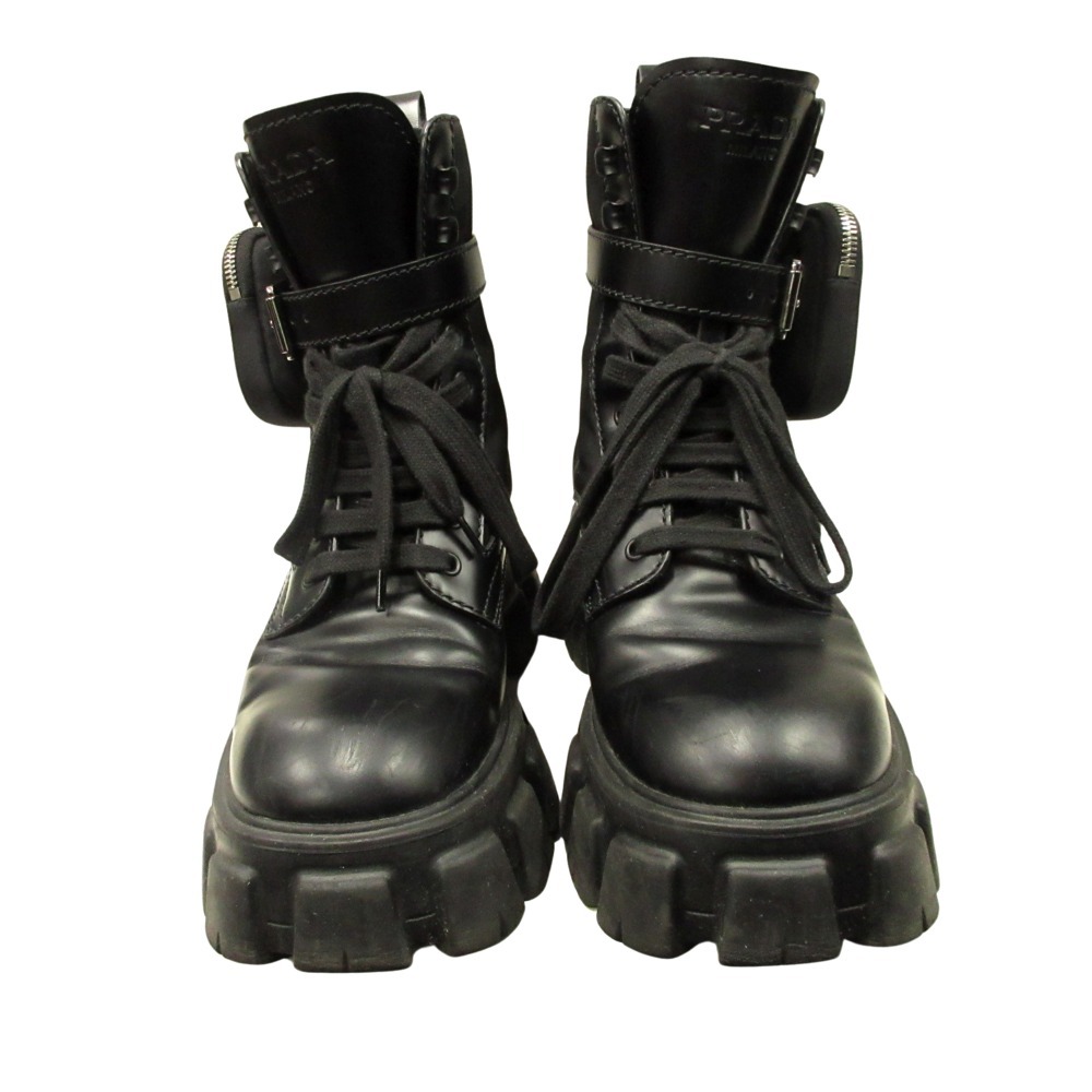 PRADA プラダ モノリス ポーチ付 ブラッシュドレザー x ナイロン ブーツ コンバット トライアングルロゴ 7.5 26.5cm ブラック