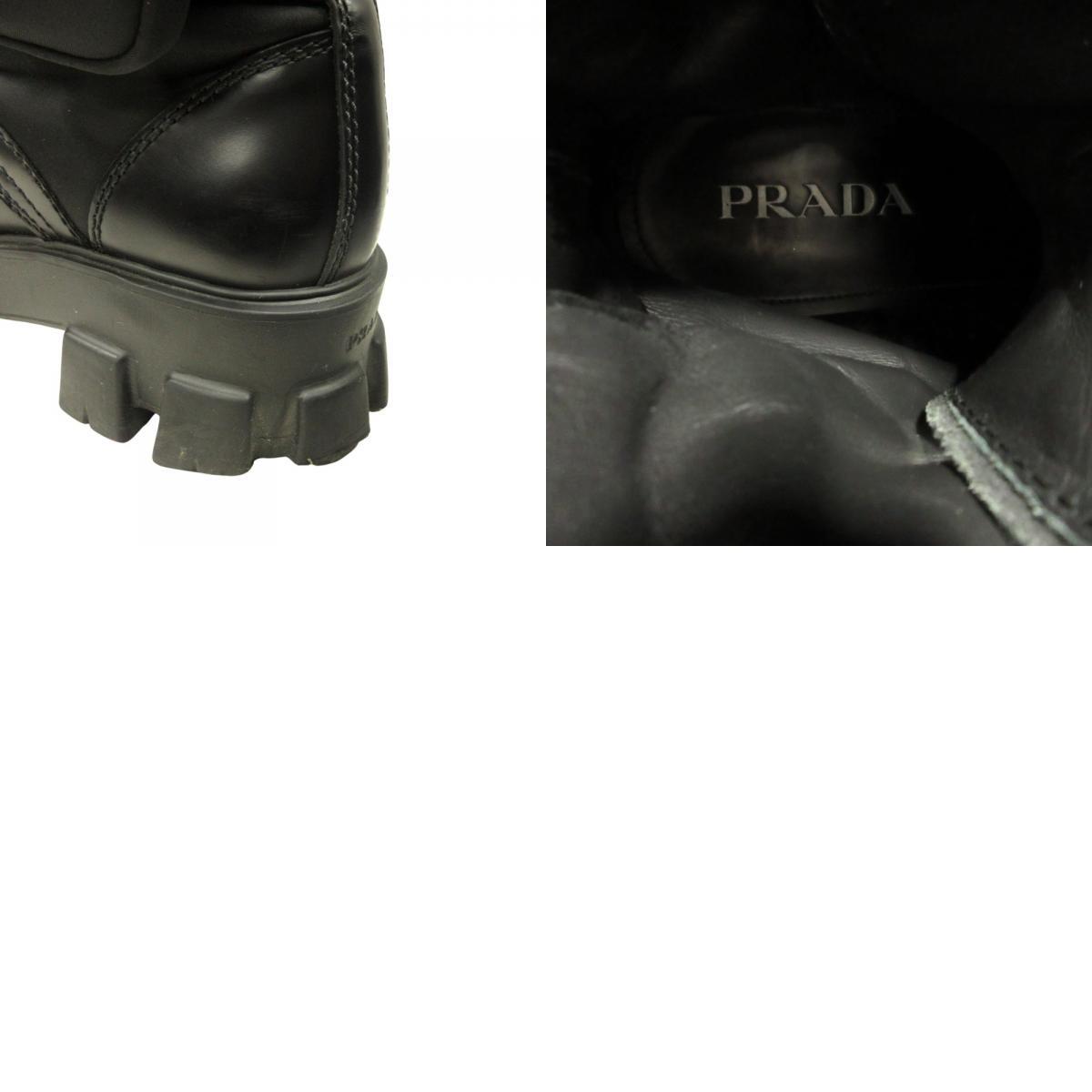 商品名:PRADA プラダ モノリス ポーチ付 ブラッシュドレザー x ナイロン ブーツ コンバット トライアングルロゴ 7.5 26.5cm ブラック