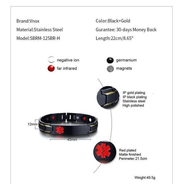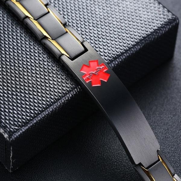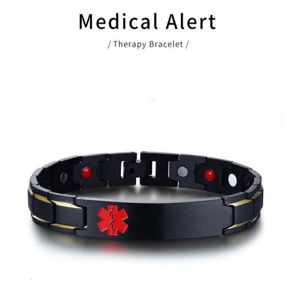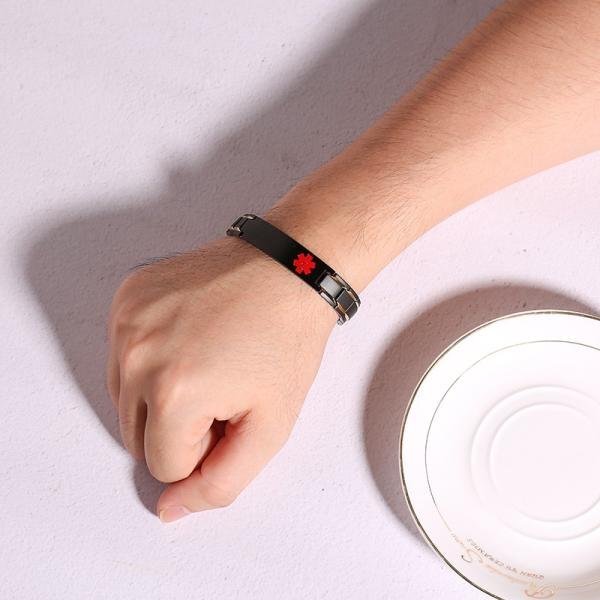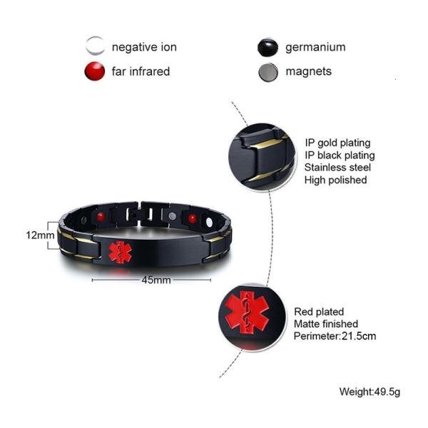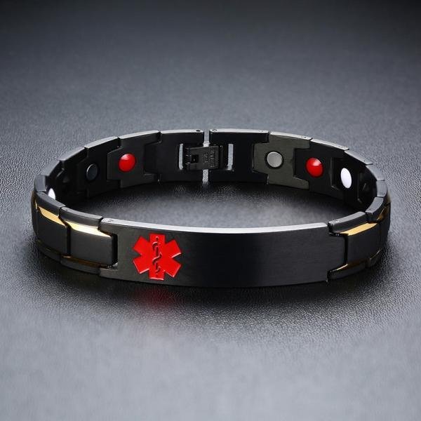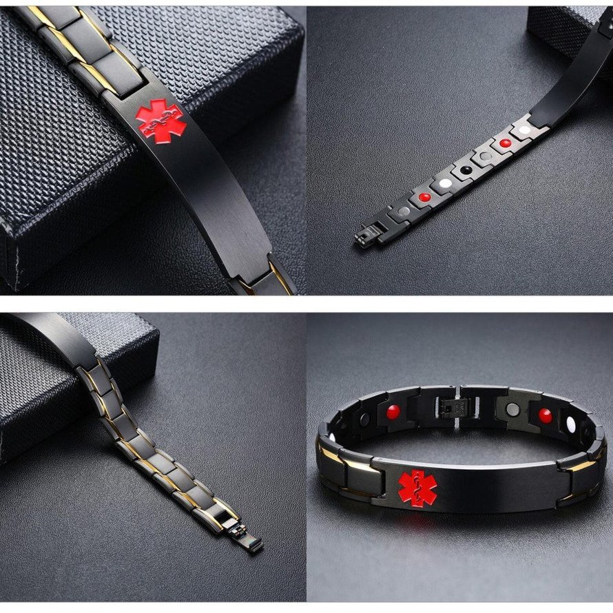 スタイリッシュ メンズ マグネティック 磁石 メディカル ブレスレット 刻印 ネーム 名前 ジュエリー