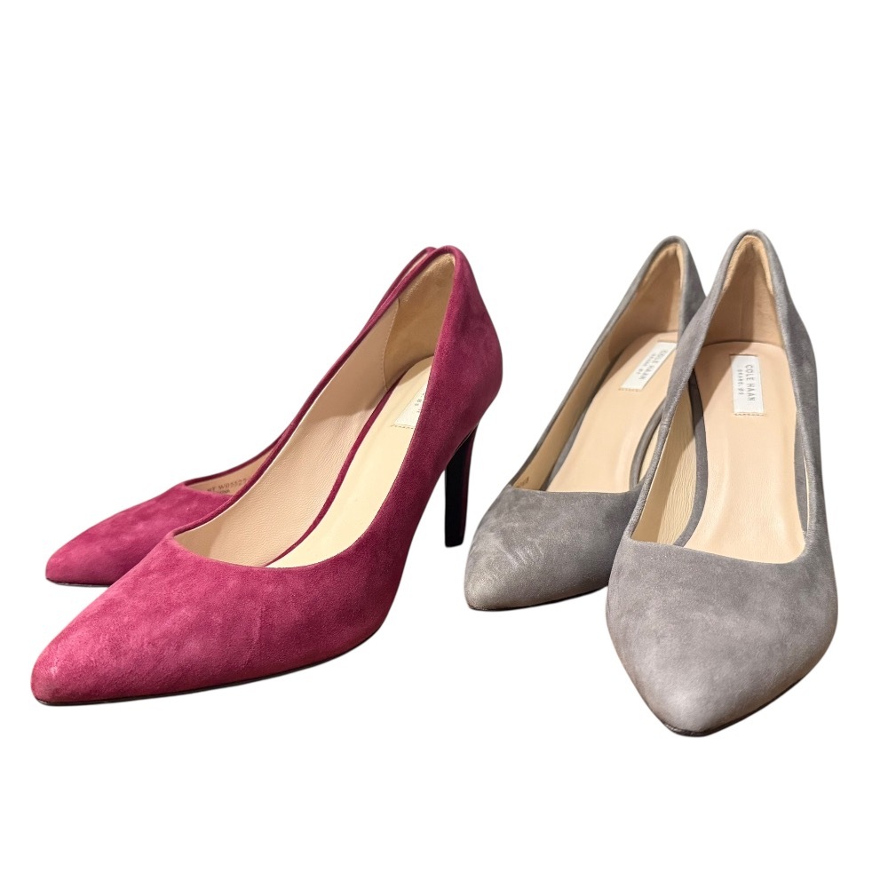 美品 COLE HAAN コールハーン スエード ポインテッドトゥ パンプス 2点セット 6.5B 23.5cm相当 ボルドー グレー