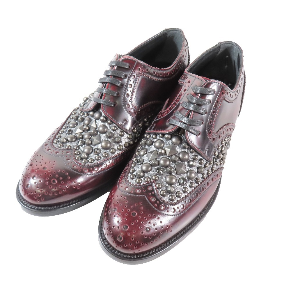 商品名:DOLCE&GABBANA ドルチェアンドガッバーナ ウイングチップ スタッズ ドレスシューズ 革靴 シューズ レッド 35.5