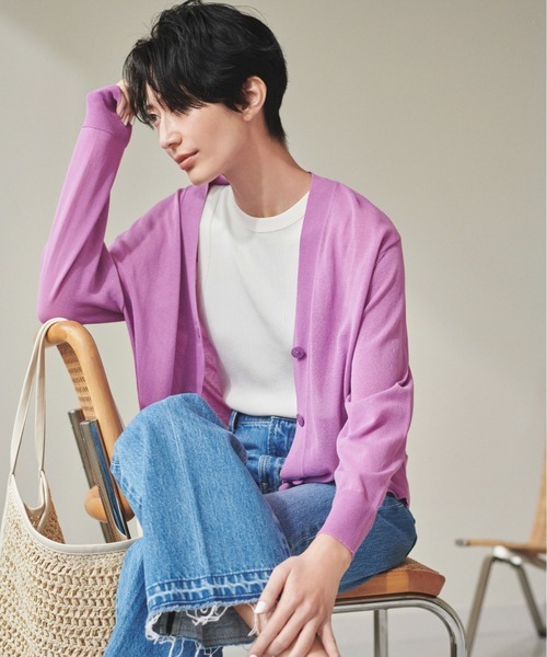 参考商品名:シェル釦ハイゲージボックスカーディガン