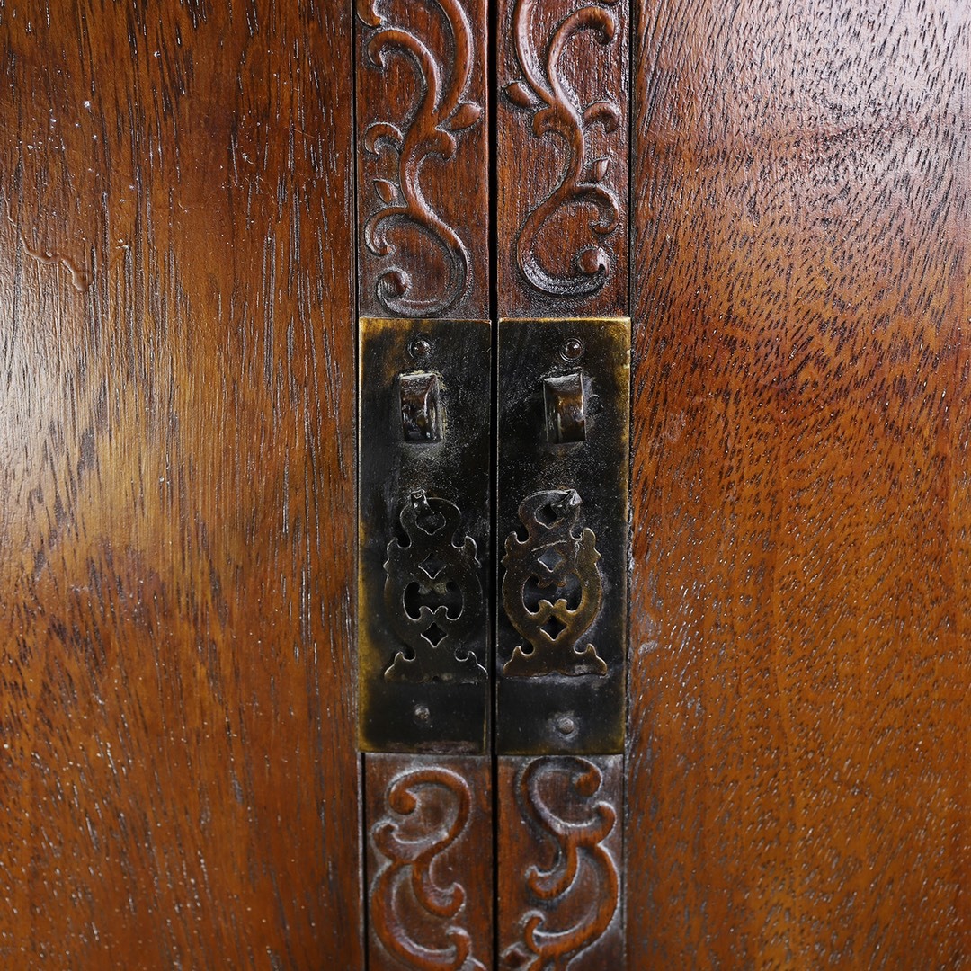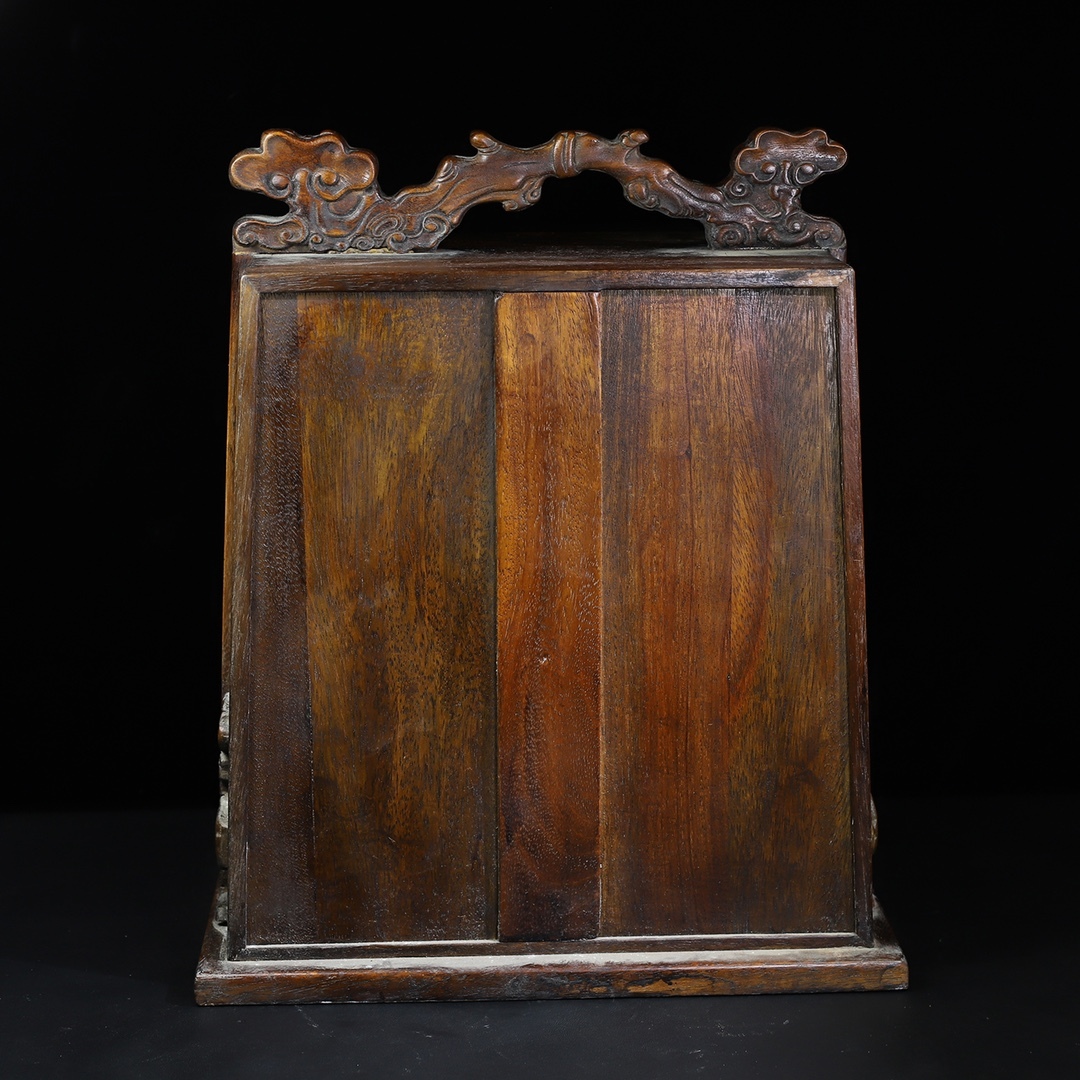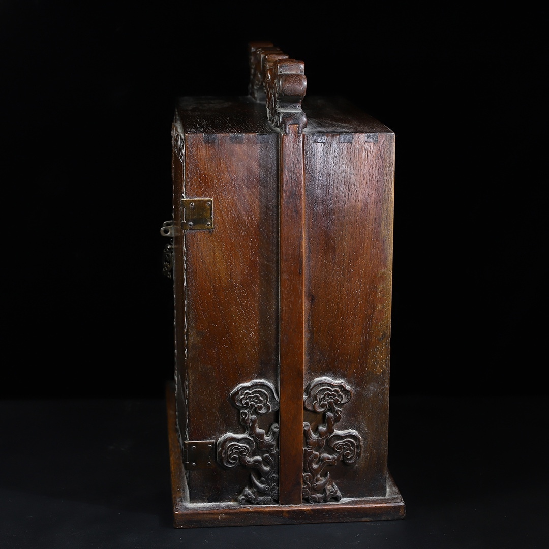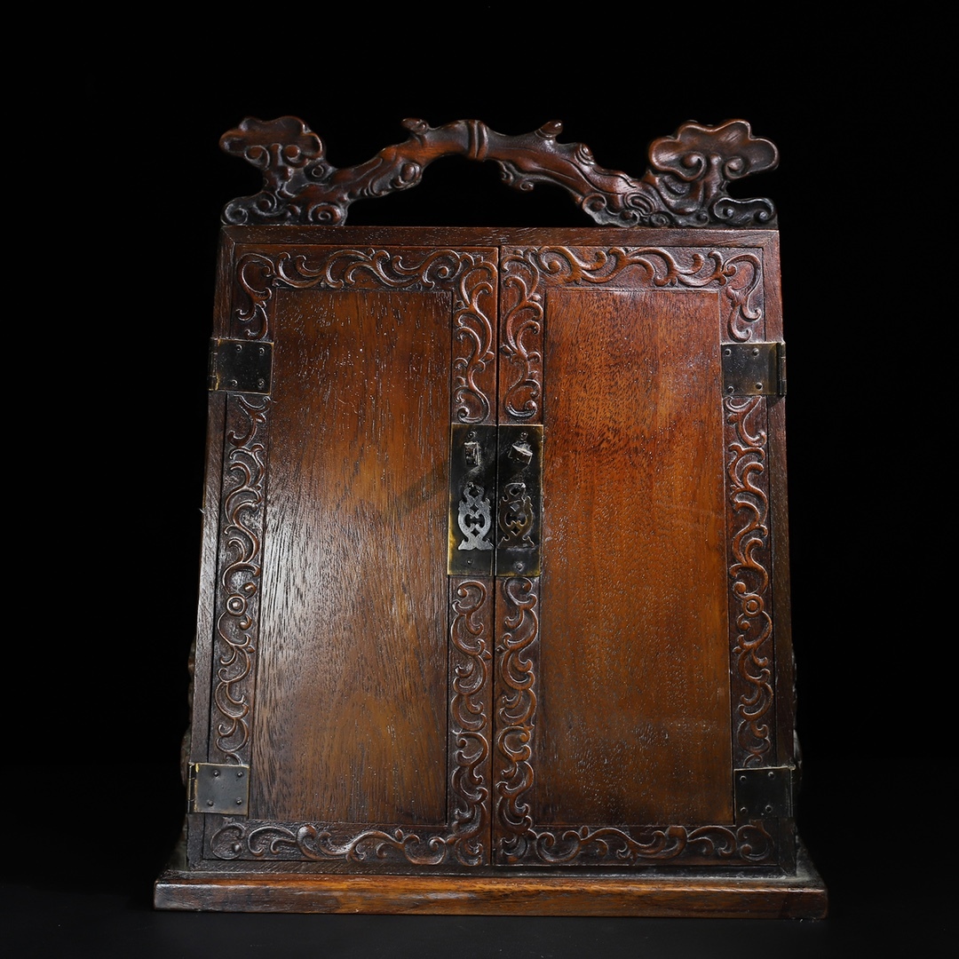 *珍品旧蔵* 清 花梨木 彫刻 霊芝如意提梁 対開扉戸棚 木製 極細工 中国古玩 骨董品 古美味 H48