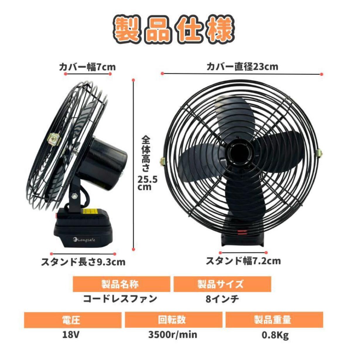 マキタ makita 充電式 互換 8インチ 扇風機 卓上ファン 静音 小型 キャンプ コードレス 電動 18V 14.4V バッテリー 対応 ブラック