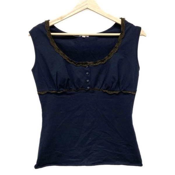 フォクシー FOXEY ノースリーブカットソー サイズ40 M 22167 - ダークネイビー×ダークブラウン レディース クルーネック/レース/BOUTIQUE