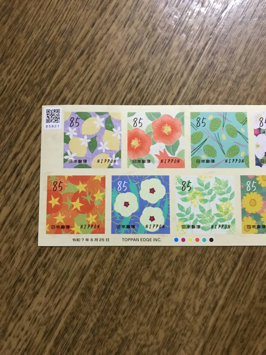 【新料金用・即決販売(R7,6.25発行版)】ライフ・花 シール切手シート (85円×10枚)