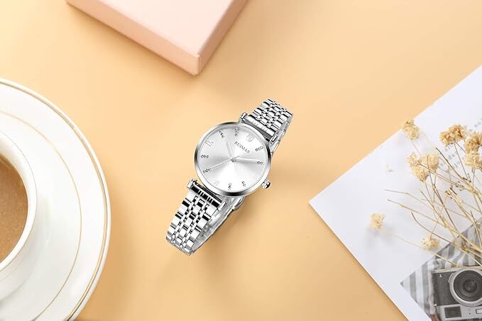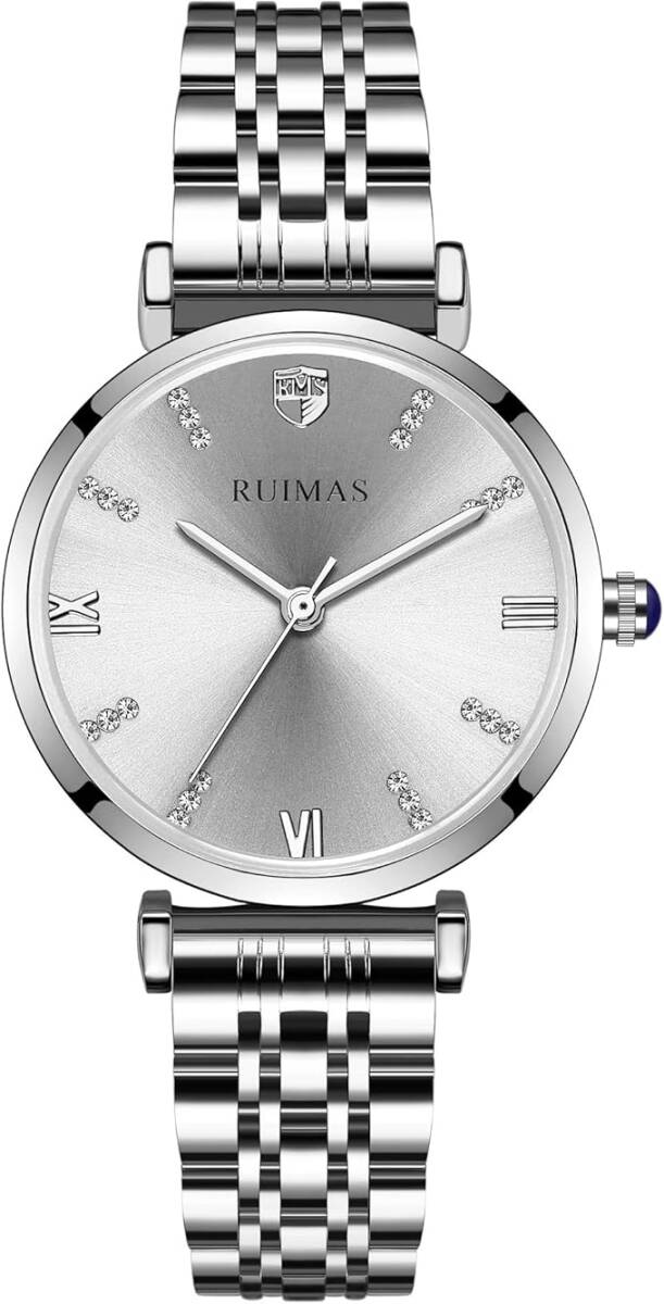 RUIMAS メンズ 腕時計 レディース シルバー ファッションクオーツ 時計 防水 ユニセックスダイヤモンドウォッチ